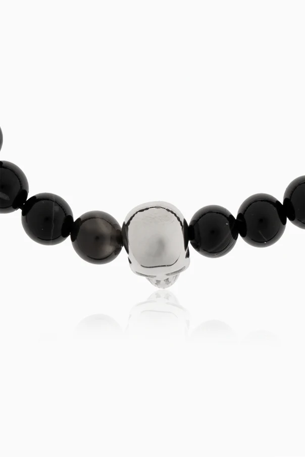 At the heart of the design lies a bold metallic skull centerpiece, rendered in lustrous silver-toned stainless steel, instantly commanding attention with its avant-garde charm. The bracelet is thoughtfully finished with a sleek adjustable cord and delicate silver beads, ensuring a perfect, customized fit for any wrist. The absence of overt branding preserves its understated exclusivity, while the skull motif speaks to confident individuality and contemporary inspiration.