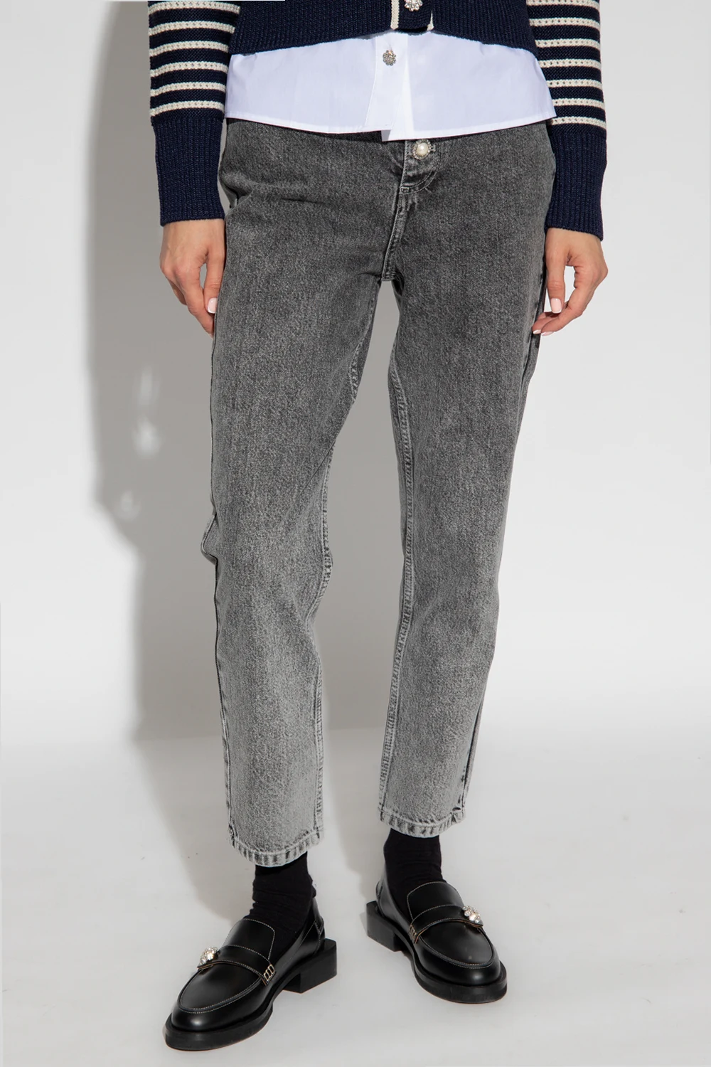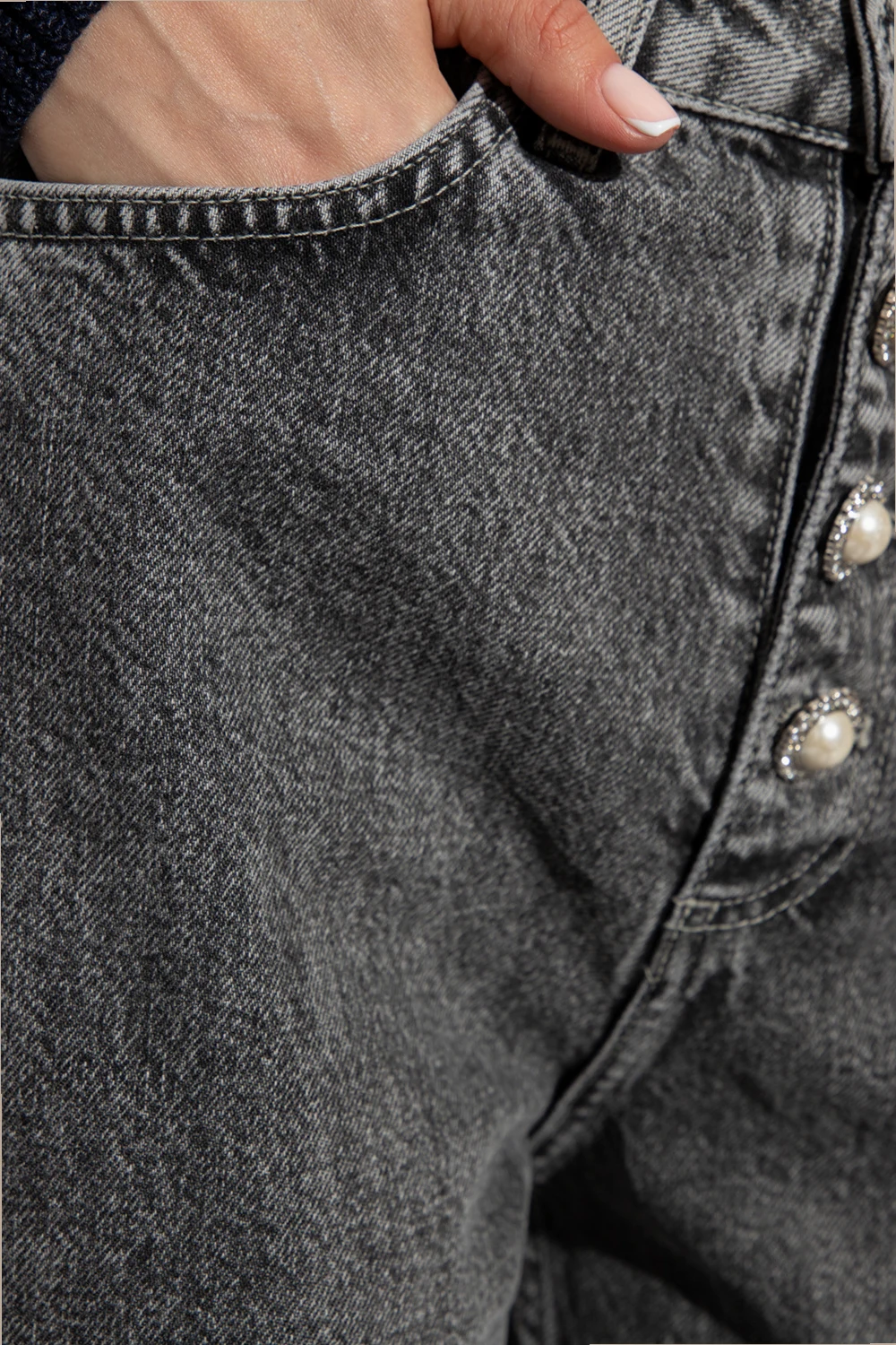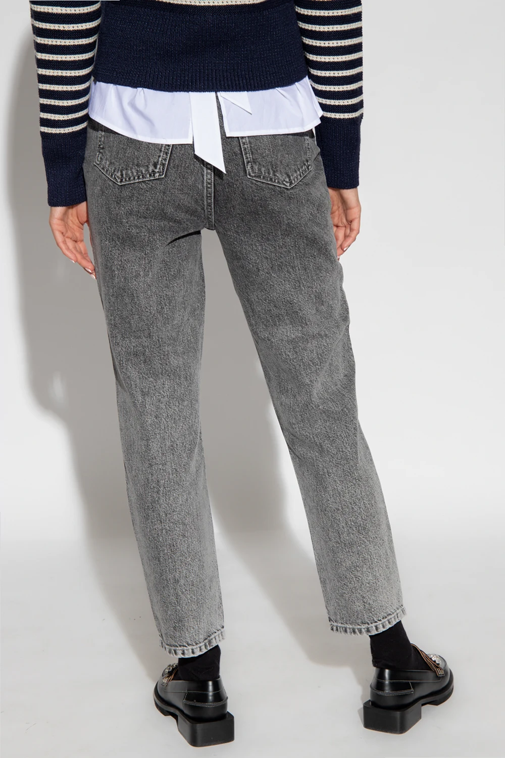 Grey ‘Yulia’ jeans from Custommade. Falling with slightly tapered legs, this pair features a high-rise waist, glossy buttons with a pearly trim, and two slip pockets on the front.