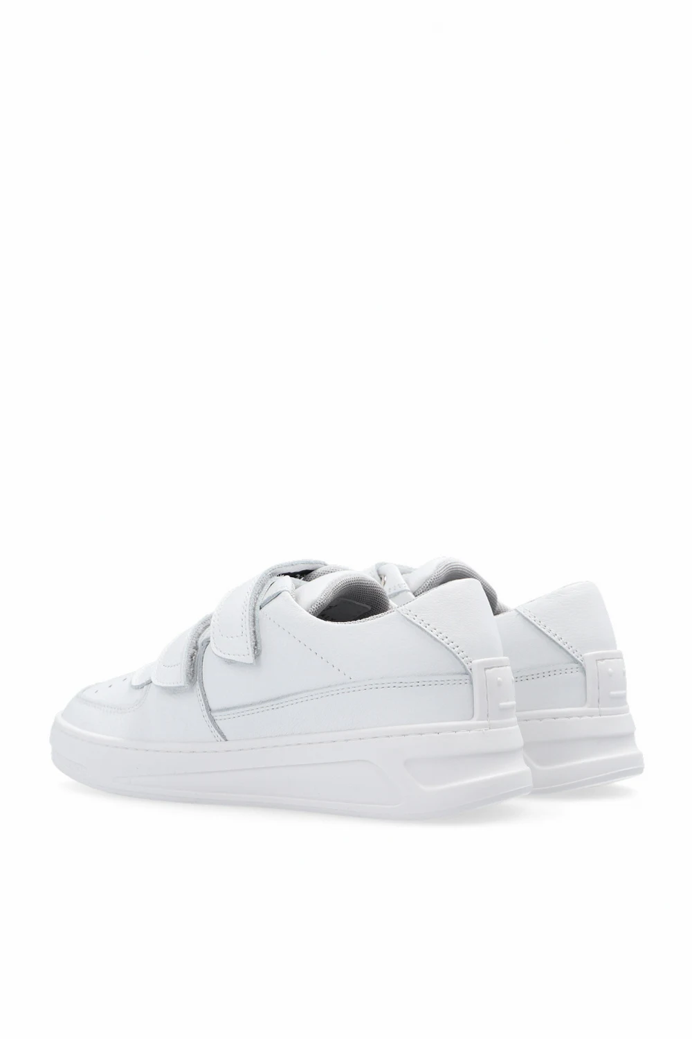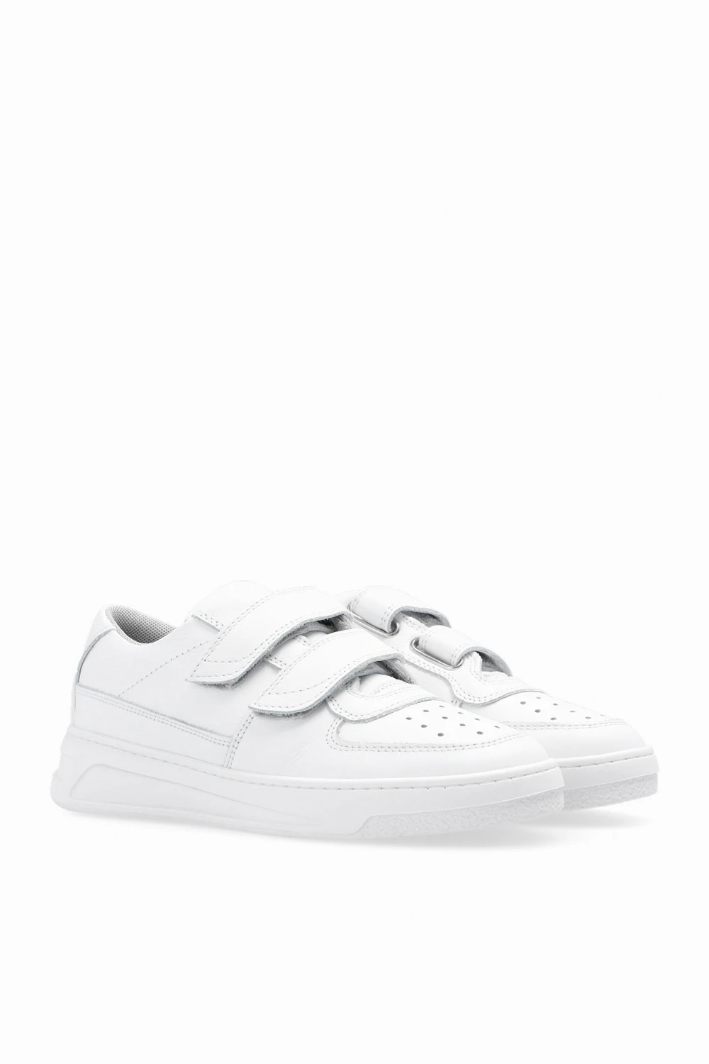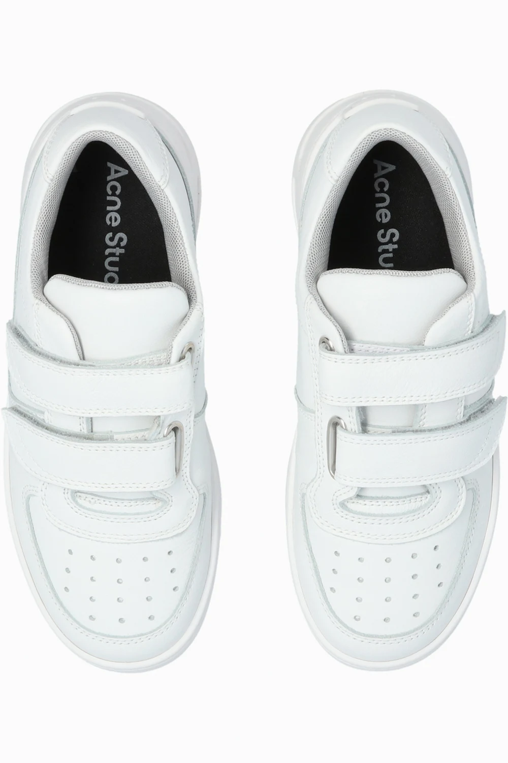 White sneakers from Acne Studios Kids. Crafted from leather, this model features a velcro fastening, a branded insert at the back and a white rubber sole at the base.