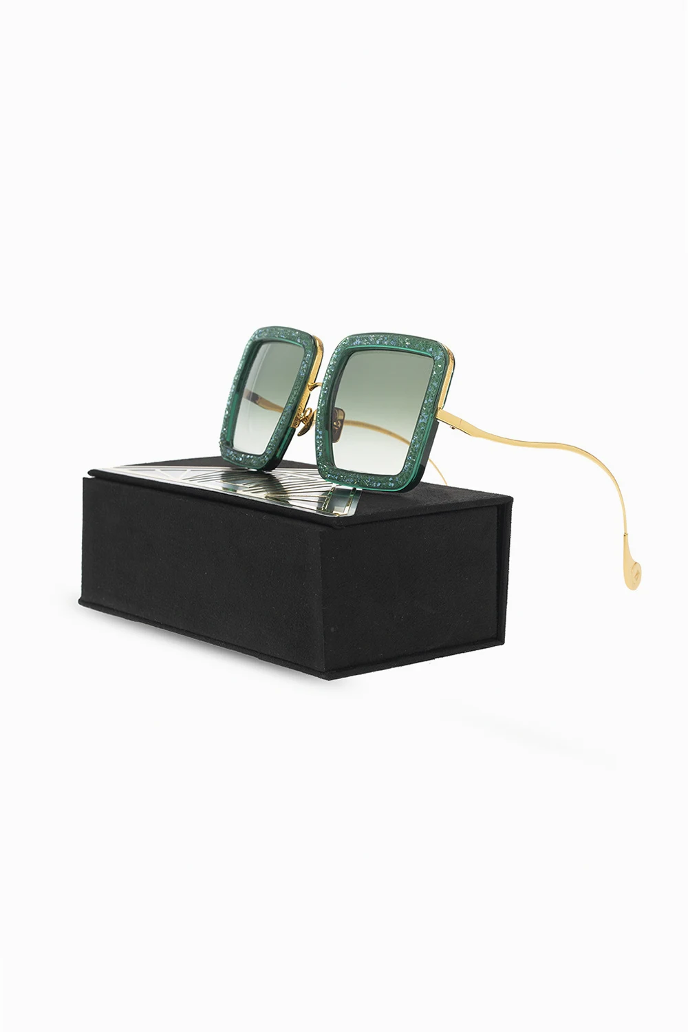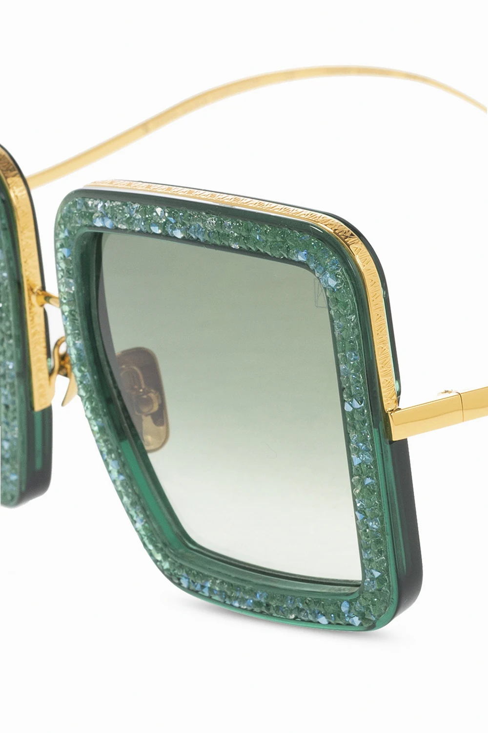 Green and gold-tone ‘Beaming Sky’ sunglasses from Anna Karin Karlsson. Plated with 24k gold, this pair comes with a case and showcases an engraved logo and certified brown lenses with UVA/UVB protection.