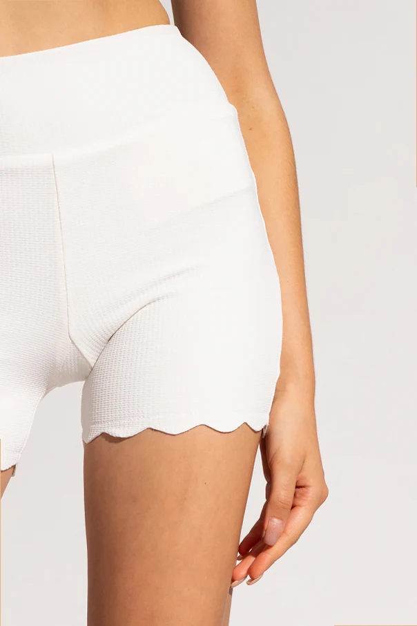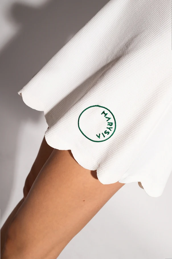 Biała, sukienka na ramiączkach z szortami Marysia. Wykonana z materiałów pochodzących z recyklingu. Ozdobiona wyszytym zielonym logo z przodu. Dekoracyjne wykończenie.