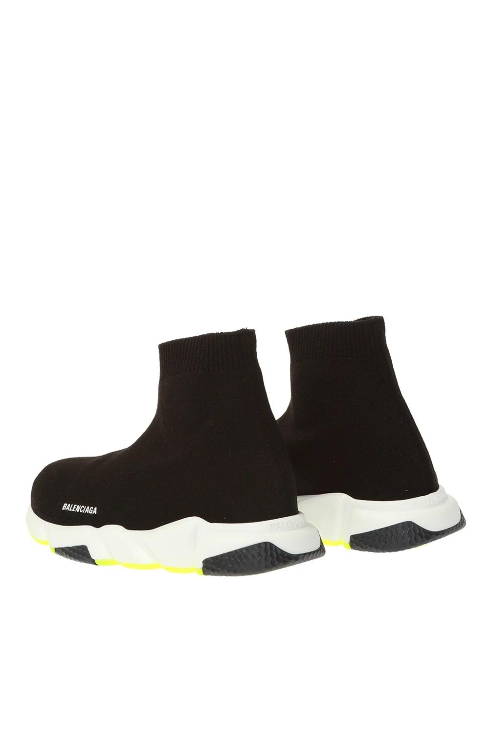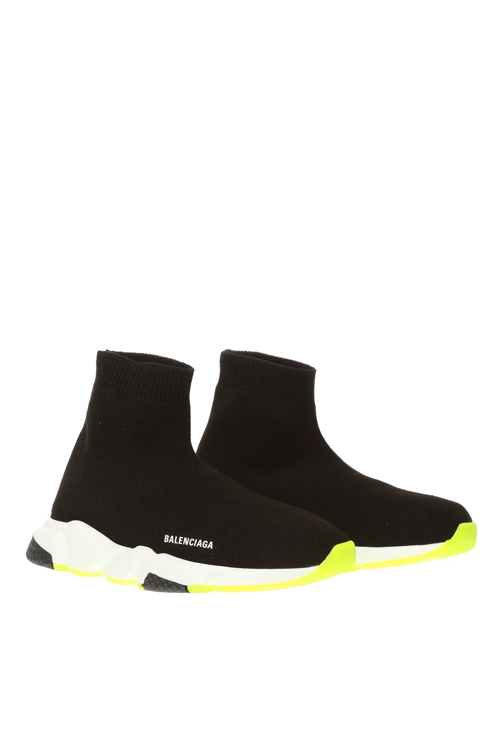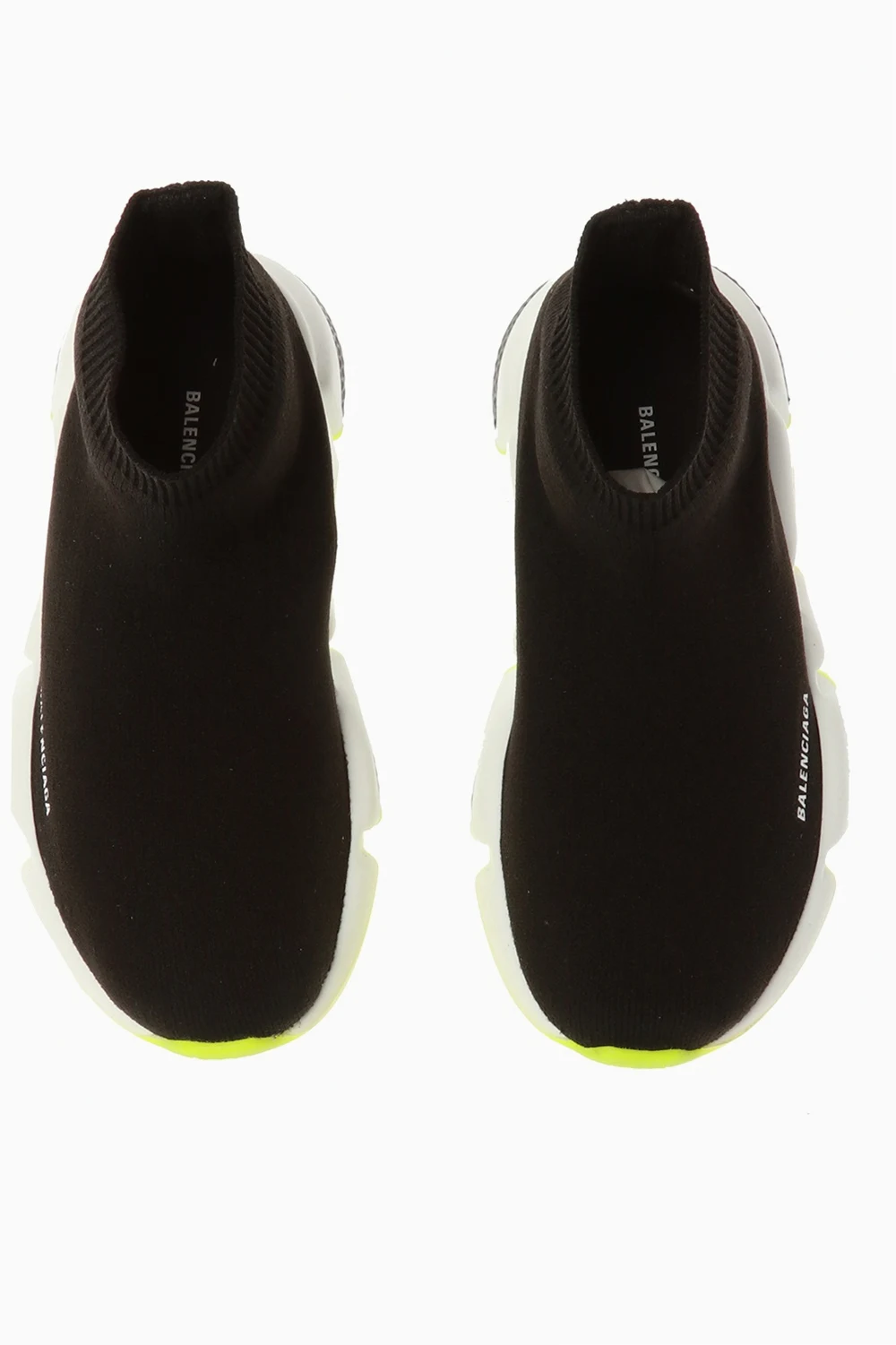 Czarne buty sportowe ze skarpetą za kostkę, model ‘Speed’ Balenciaga Kids. Nadrukowane logo w kolorze białym. Czarno-biała-neonowożółta, gumowa podeszwa.