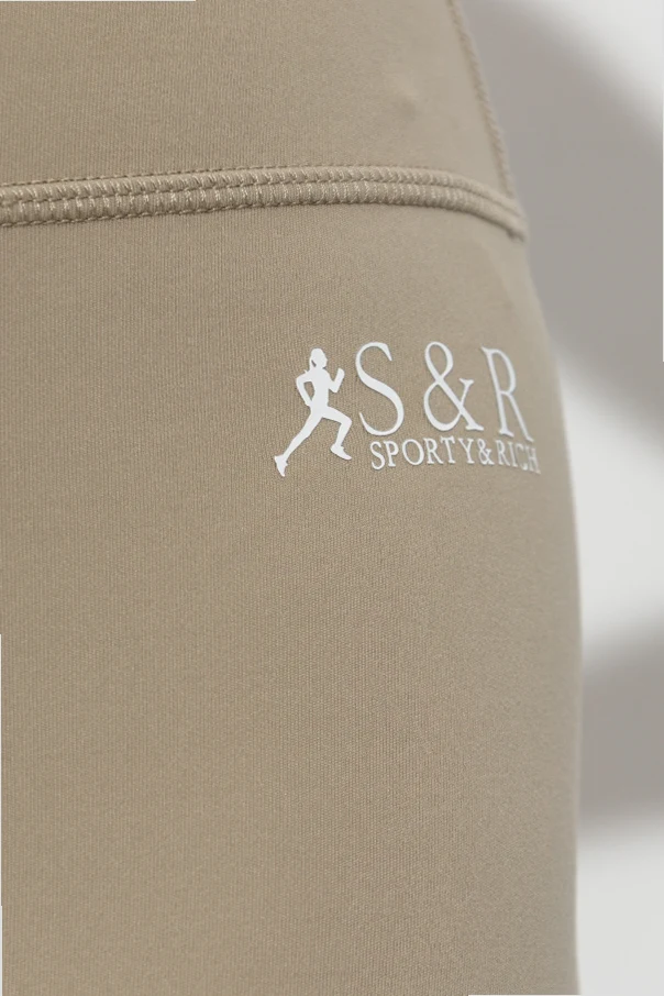 Gładka, jednolita struktura materiału została jedynie subtelnie zaakcentowana wyraźnym, białym logotypem „S&R SPORTY & RICH” oraz piktogramem biegacza. Brak dodatkowych zdobień czy kieszeni to manifest estetycznego minimalizmu, dzięki czemu legginsy zachwycają ponadczasową elegancją oraz uniwersalnością.