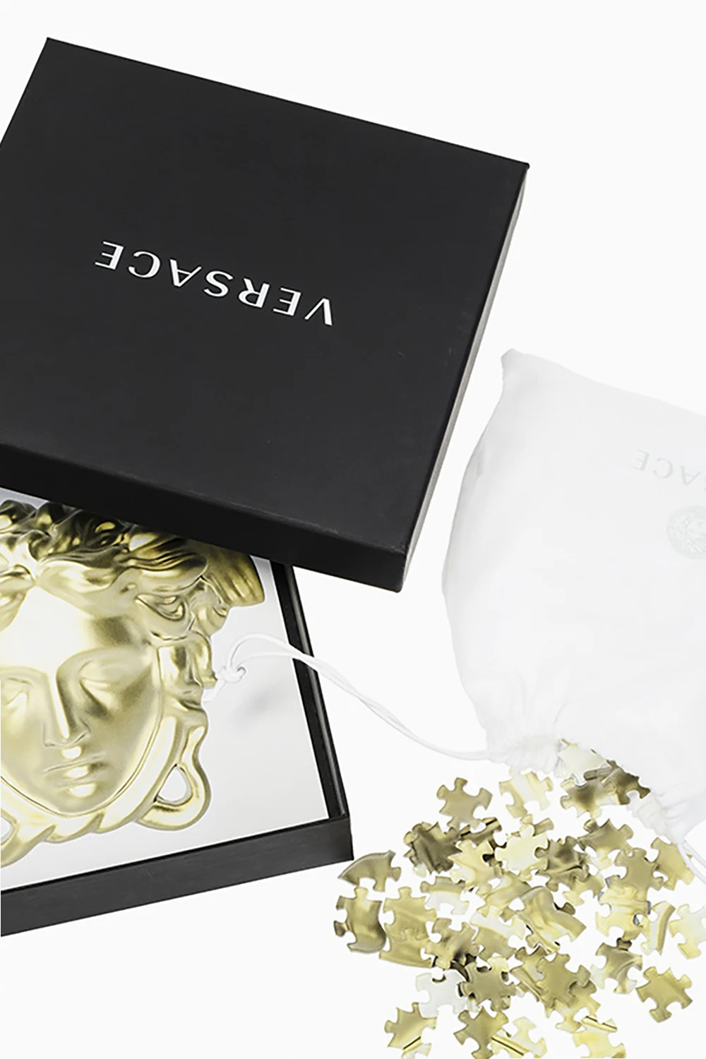 Puzzle z głową Meduzy w kolorze żółto-biało-szarym Versace Home.