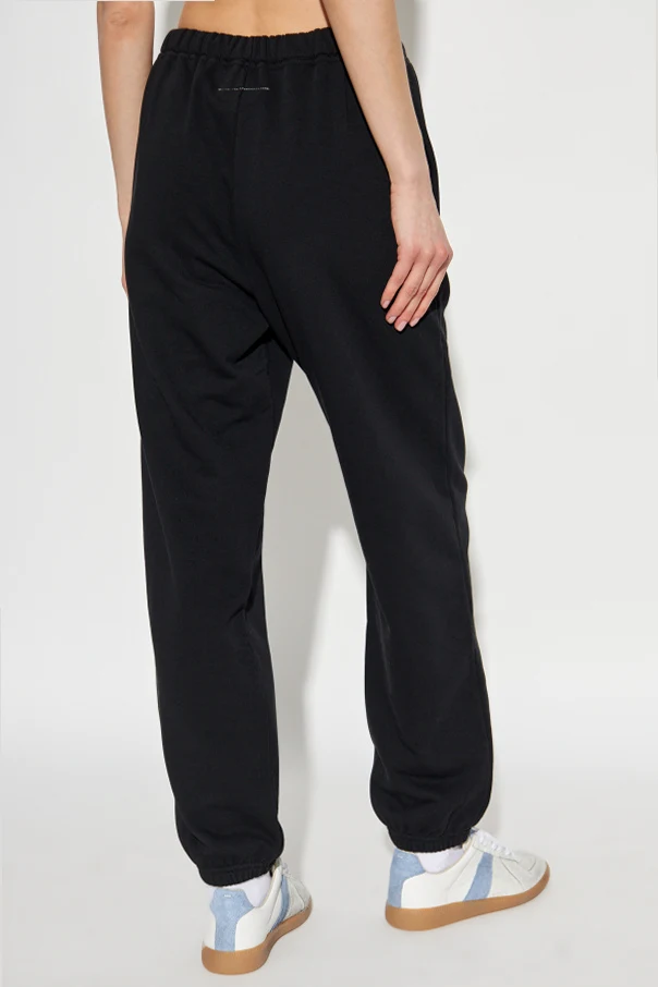 Spodnie dresowe z kolekcji MM6 Maison Margiela to kwintesencja nowoczesnej elegancji i wygody, stworzona z myślą o kobietach ceniących niebanalny styl. Utrzymane w głębokiej czerni, spodnie zachwycają lekko zwężanym fasonem jogger , subtelnie podkreślającym sylwetkę i gwarantującym wyjątkowy komfort użytkowania.
