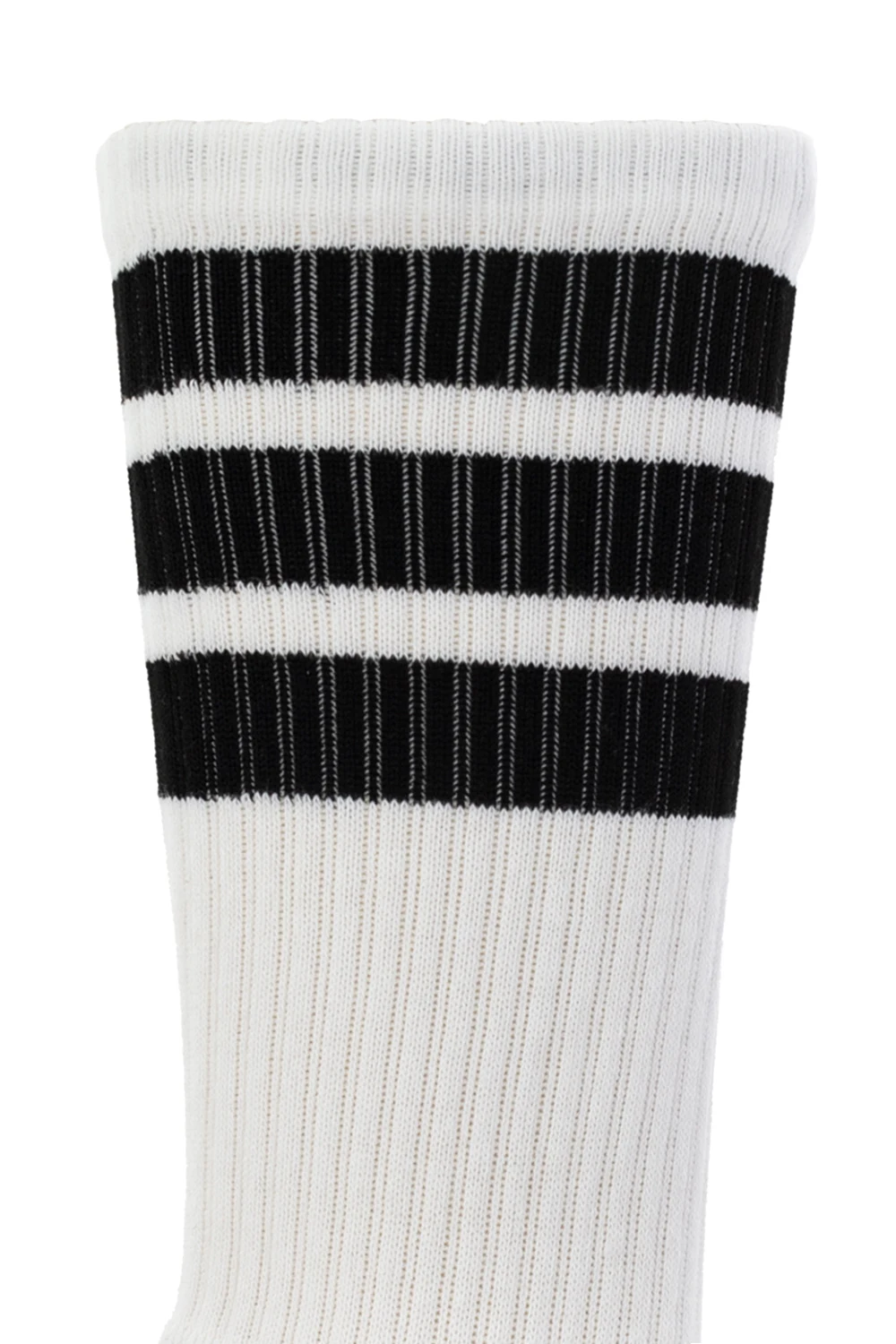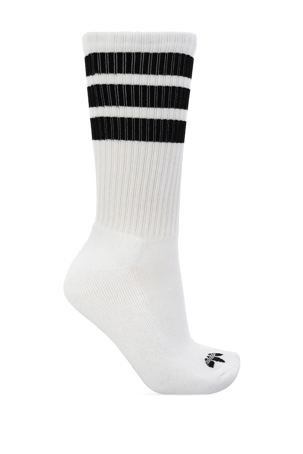 Dwupak skarpet w kolorze białym i czarnym ADIDAS Originals. Wykonane z mieszanki bawełny i materiału z recyklingu. Ozdobione charakterystycznymi dla marki trzema paskami i logo. Wykończone ściągaczem.