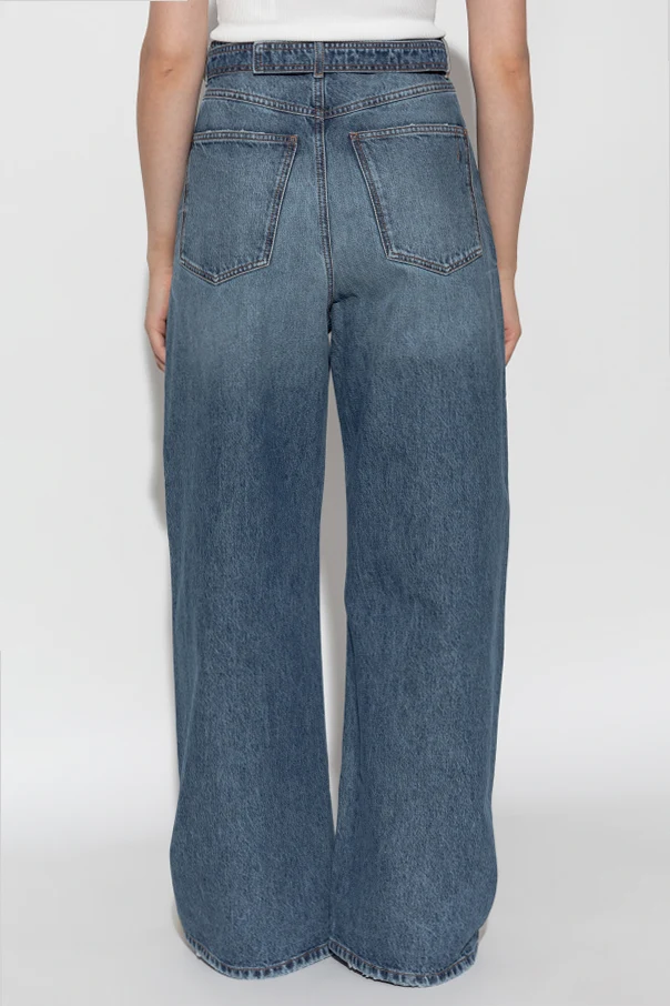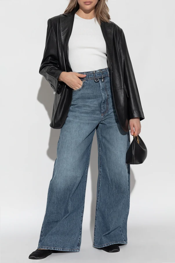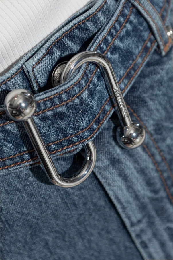 Efektowne kontrastowe stebnowanie rudą nicią na szwach oraz pięciokieszeniowy układ czynią te jeansy wyrafinowanym, miejskim wyborem. Centralnym punktem jest industrialna, srebrna klamra z grawerem projektanta, stanowiąca wyjątkowy, biżuteryjny akcent.