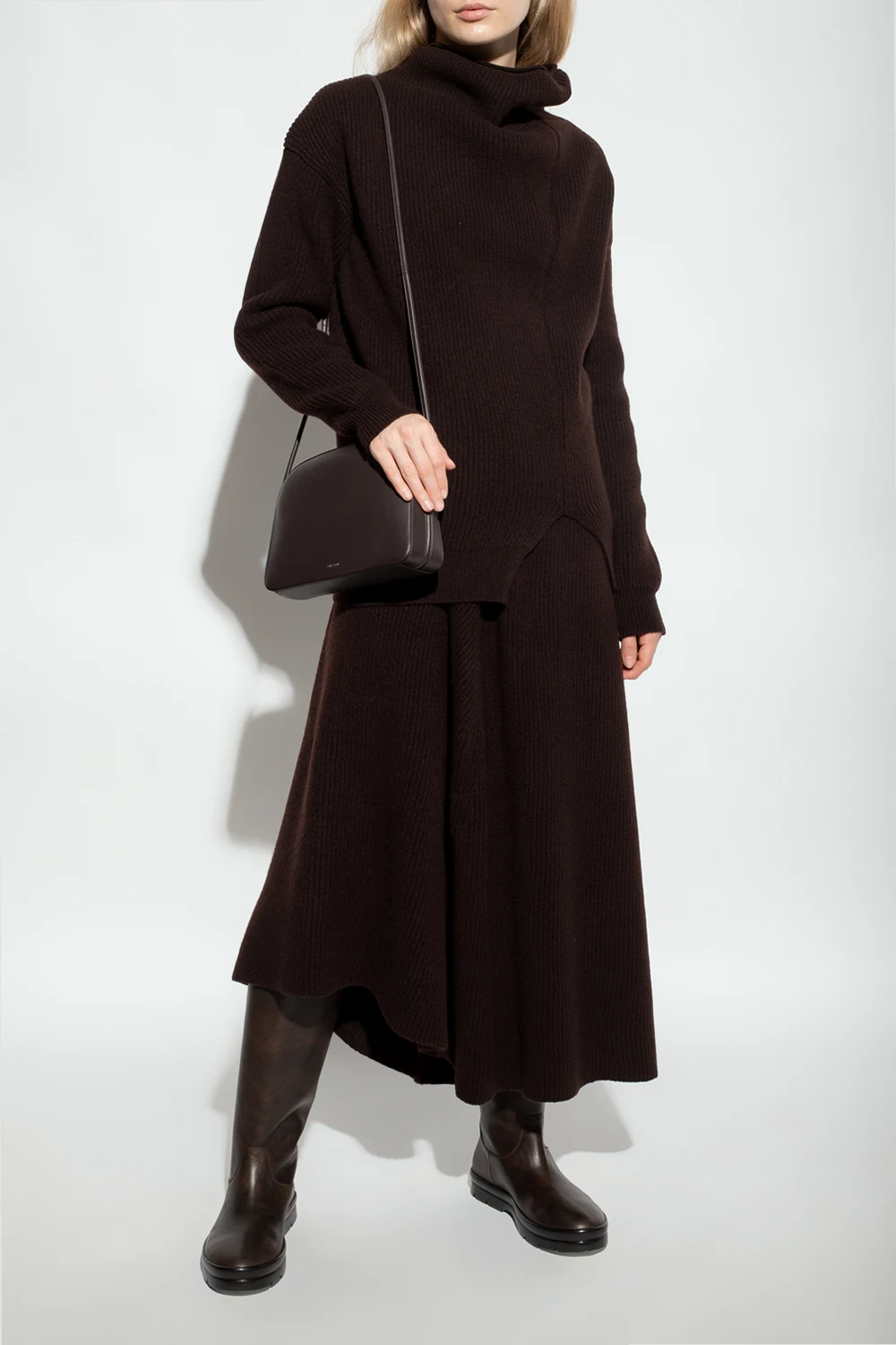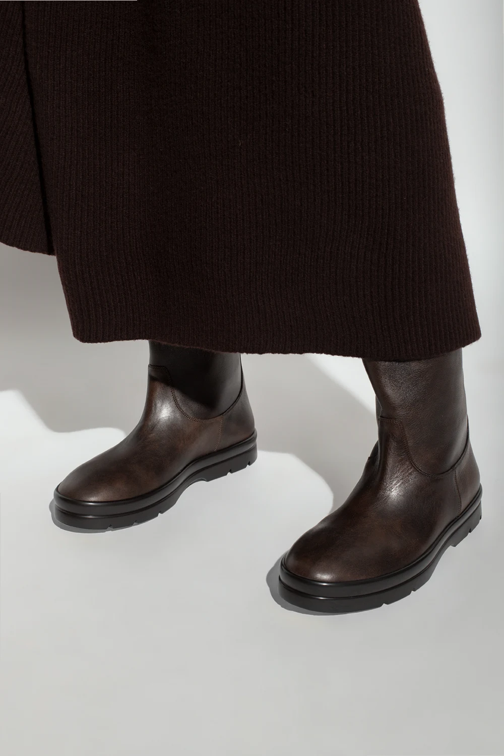 Ciemnobrązowe kozaki, model ‘Billie Boot’ The Row. Wykonane ze skóry cielęcej. Czarna, gumowa podeszwa.