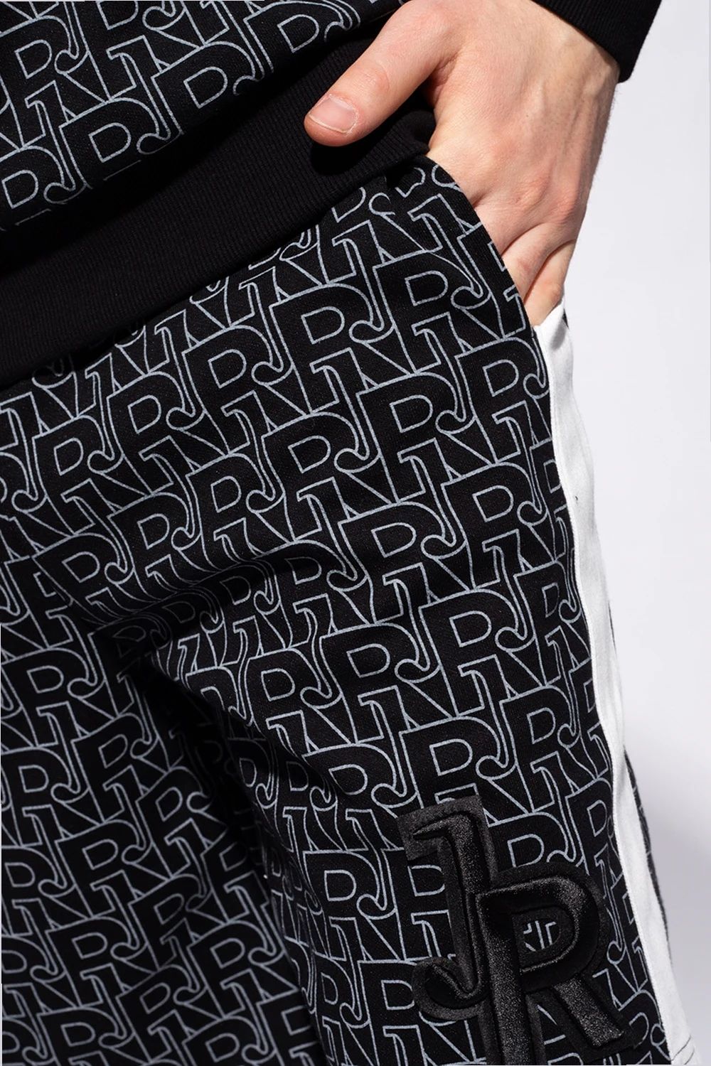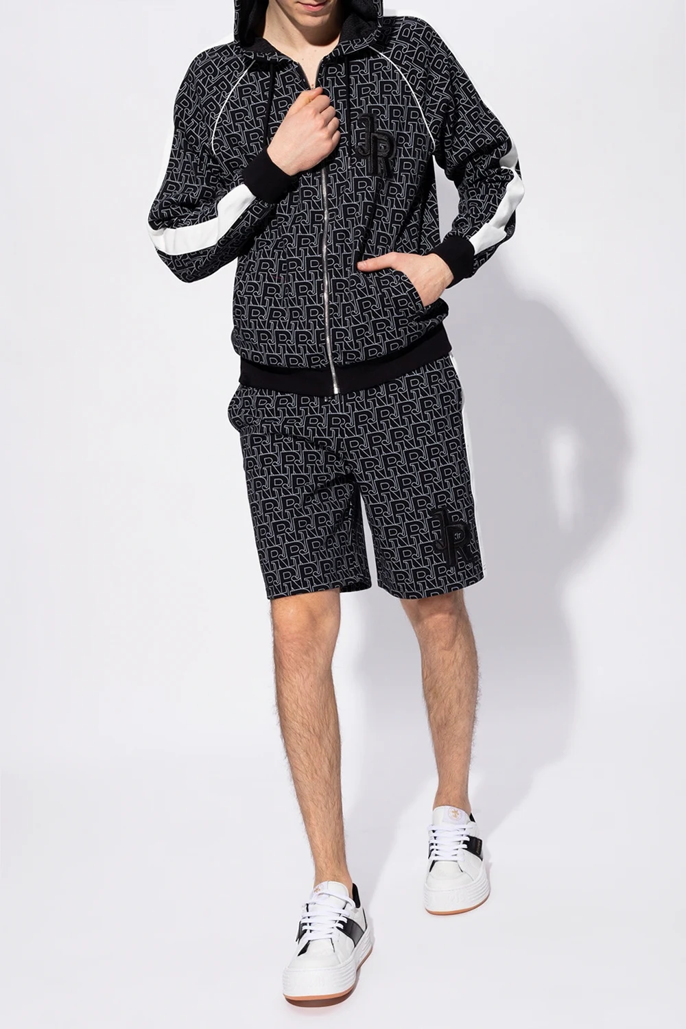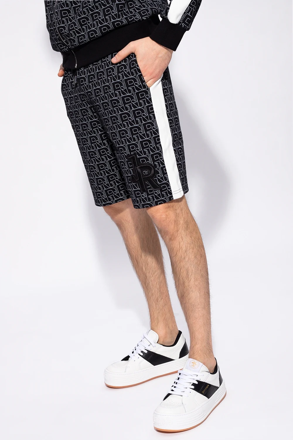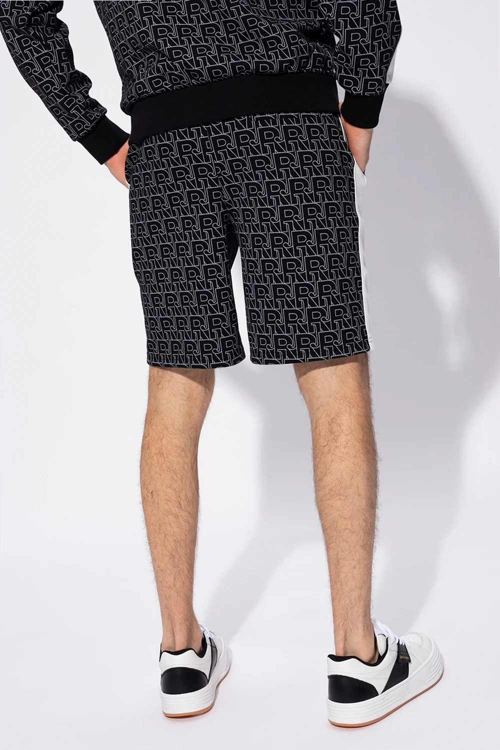 Czarne szorty John Richmond. W pasie ściągane trokami. Nadrukowane oraz wyszyte logo. Trzy wsuwane kieszenie: dwie z przodu i pojedyncza kieszeń z tyłu.