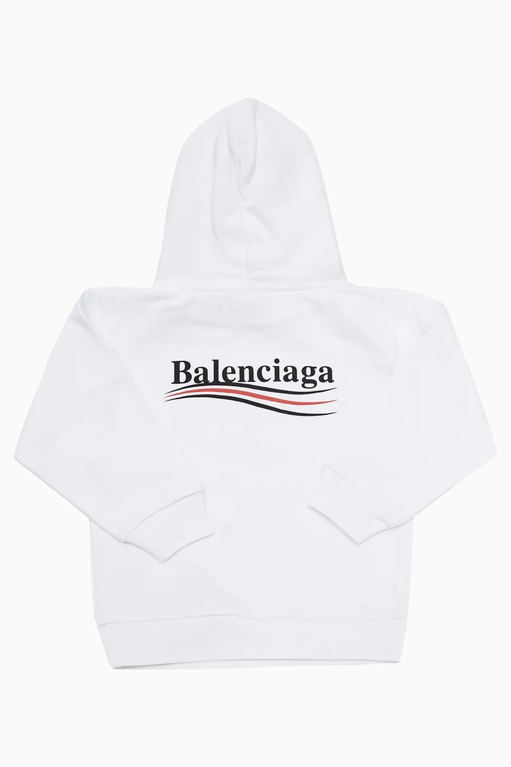 Biała bluza z kapturem Balenciaga Kids. Wykonana z bawełny. Nadrukowane logo w kolorze czarnym. Dwie wsuwane kieszenie. Zakończona ściągaczami.