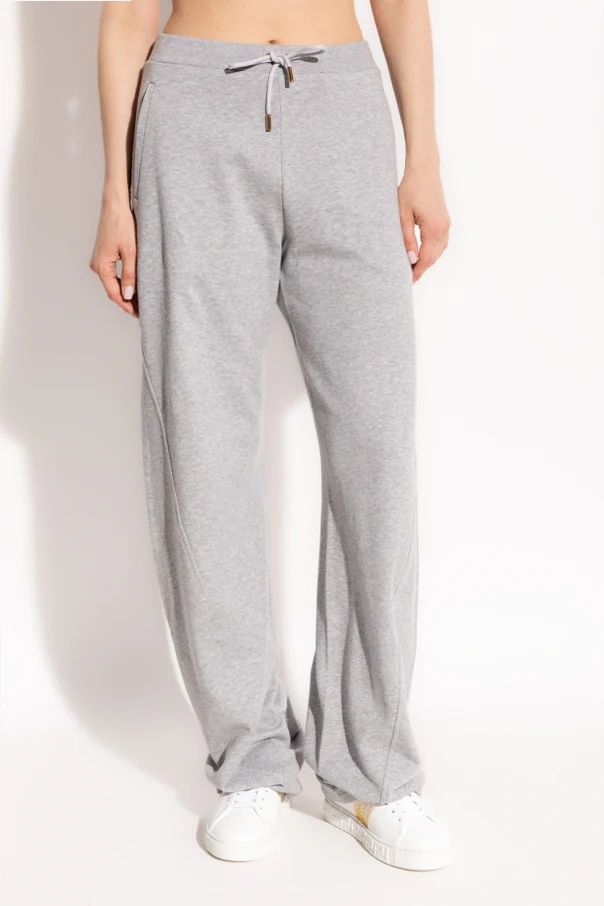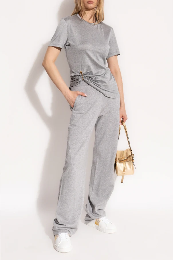 Spodnie dresowe marki Versace to uosobienie wyszukanej wygody i ponadczasowej elegancji. Projekt zachwyca zrównoważoną prostotą – gładki, jednolity materiał, który subtelnie podkreśla wysmakowany charakter, został wykonany z doskonałej jakości dzianiny, będącej szlachetną mieszanką bawełny oraz kaszmiru. Dzięki temu tkanina jest niebywale miękka, elastyczna i przyjemna w dotyku.