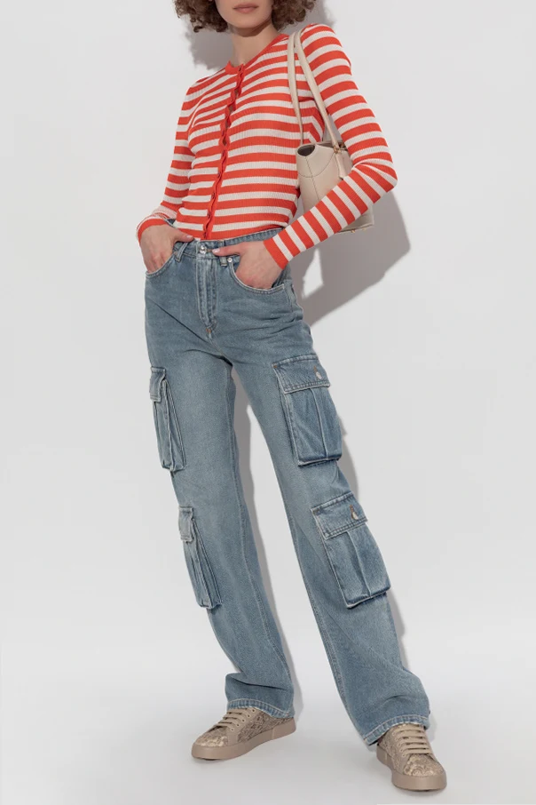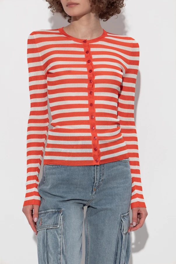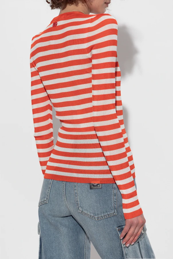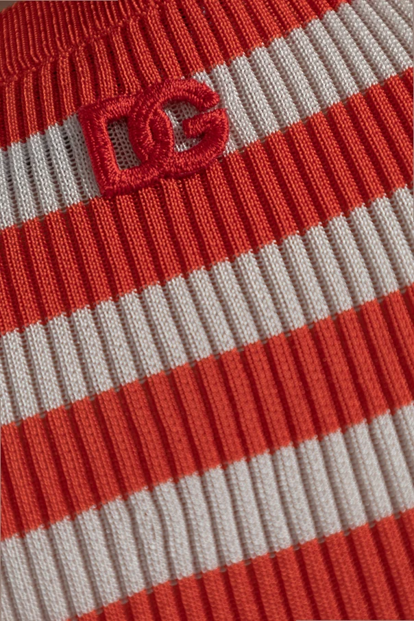 Kardigan ze wzorem w pasy autorstwa słynnego włoskiego duetu Dolce & Gabbana to kwintesencja wyrafinowanej elegancji. Klasyczny, dopasowany fason z długimi rękawami i starannie taliowaną linią subtelnie podkreśla kobiecą sylwetkę, zaś okrągły dekolt dodaje lekkości całej kompozycji.