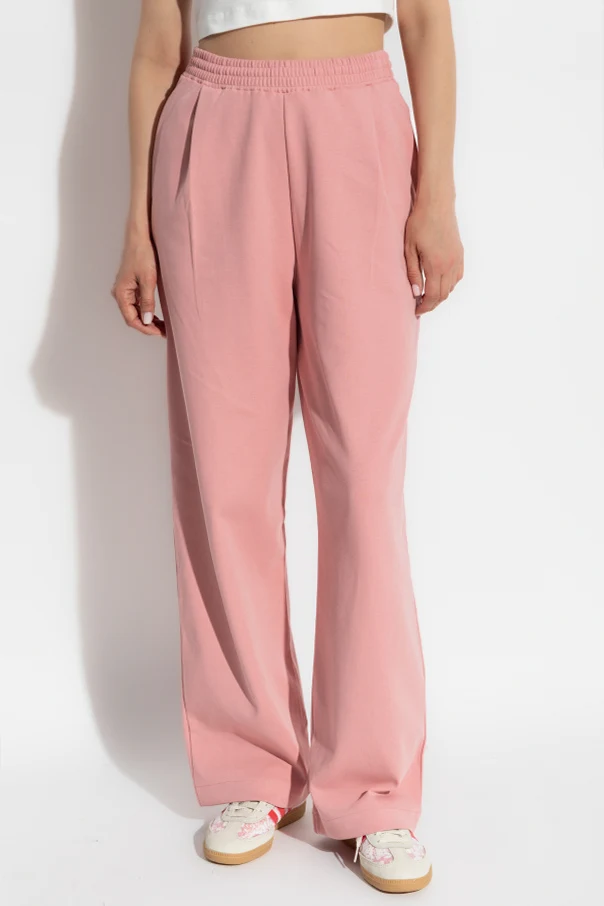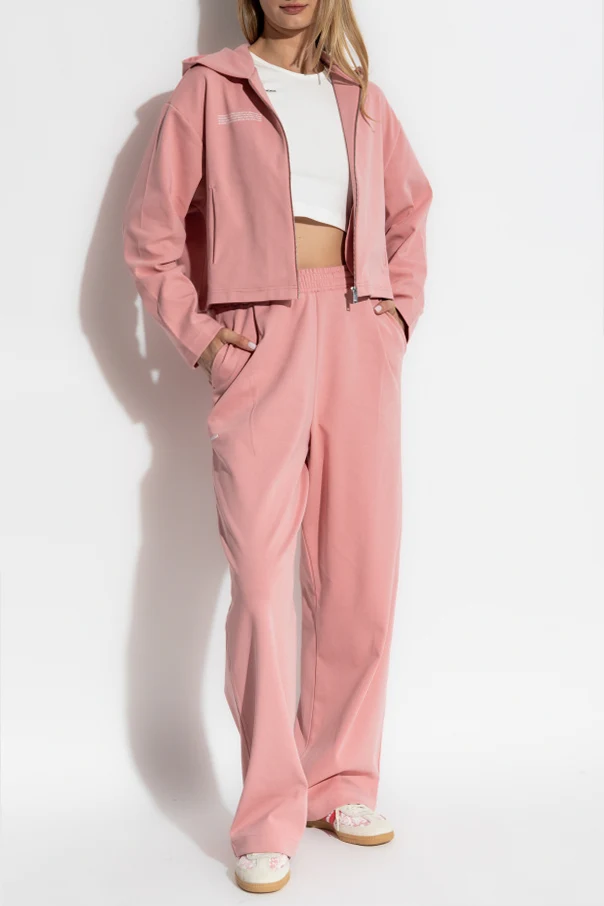 Różowe spodnie dresowe autorstwa renomowanego projektanta Pangaia stanowią kwintesencję doskonałego połączenia wygody i wyrafinowanego stylu. Prosty, lekko luźny krój ze szeroką nogawką subtelnie podkreśla nowoczesną sylwetkę, a szeroka elastyczna gumka w pasie gwarantuje wyjątkowy komfort noszenia oraz idealne dopasowanie do każdej figury.