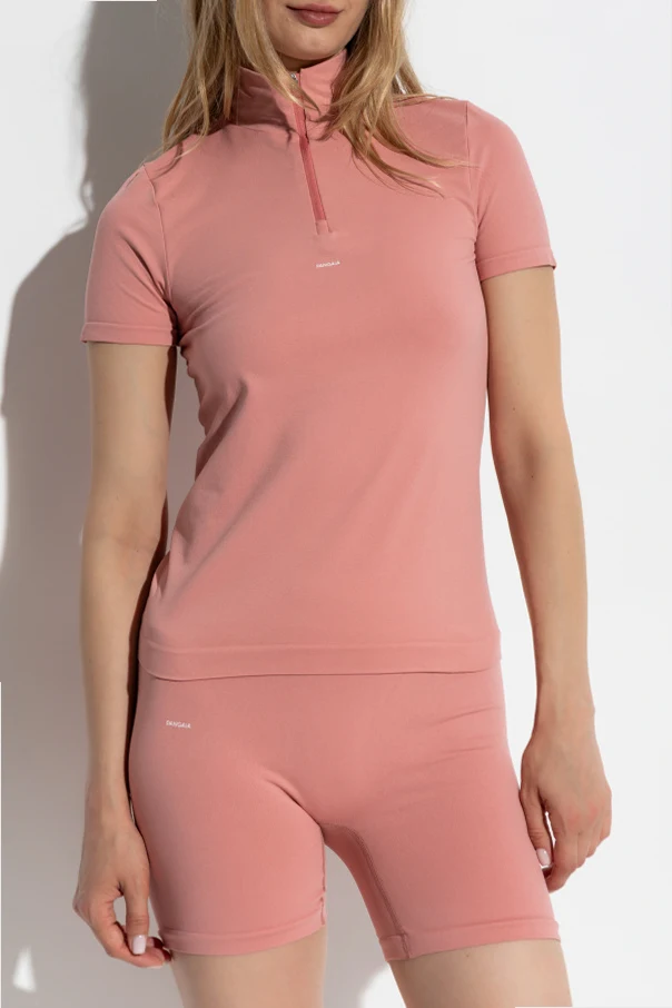 Top sportowy z logo marki Pangaia to wykwintna propozycja dla koneserek elegancji i sportowej finezji. Uwodzicielsko dopasowany fason z krótkim rękawem oraz delikatnie wydłużonym korpusem dyskretnie modeluje kobiecą sylwetkę, zachowując przy tym pełną swobodę ruchu. Ascetyczny, jednolity róż podkreśla wyrafinowaną, minimalistyczną estetykę produktu.