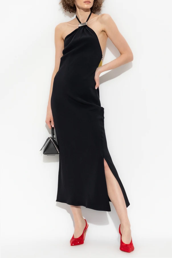 Sukienka z aplikacją marki The Attico to esencja wyrafinowanej kobiecości. Długość maxi w połączeniu z subtelnie dopasowanym fasonem harmonijnie eksponuje sylwetkę. Lekko rozszerzana linia dołu oraz boczne rozcięcie nadają lekkości i swobody ruchu, zapewniając zarazem ponadczasową elegancję.
