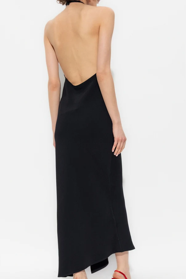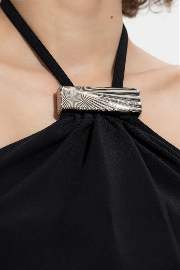Głęboka, jednolita czerń w minimalistycznej odsłonie podkreśla szlachetność projektu. Gładka, przyjemna w dotyku tkanina o delikatnie matowym wykończeniu to kunsztowne połączenie nowoczesnych materiałów – acetatu i wiskozy – gwarantujących wyjątkowe dopasowanie do figury oraz komfort noszenia. Charakterystyczny dekolt typu halter neck nadaje stylizacji osobliwego wdzięku.