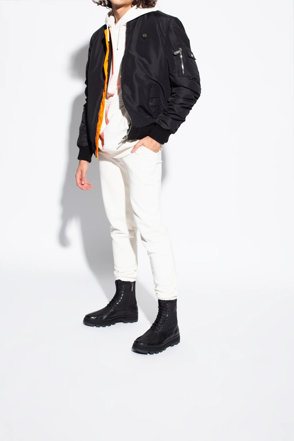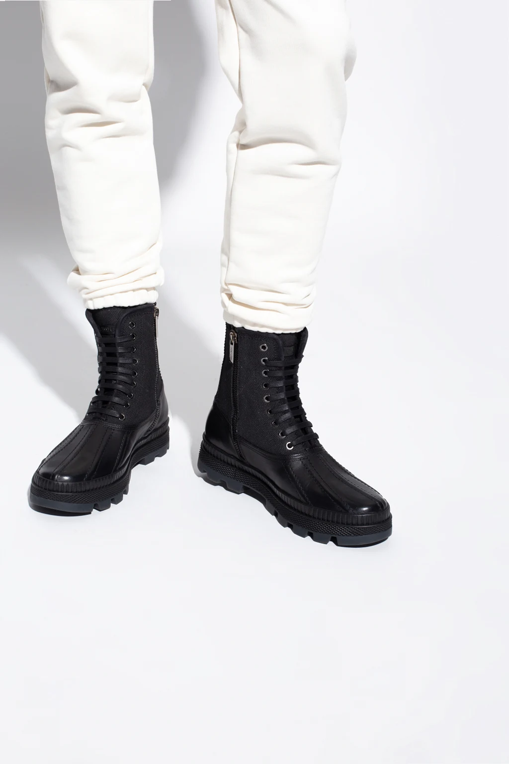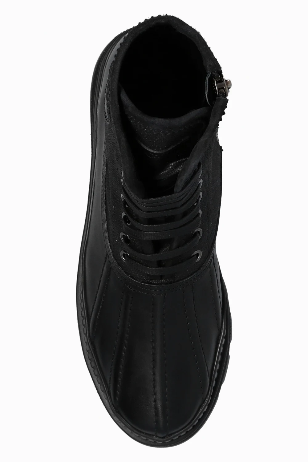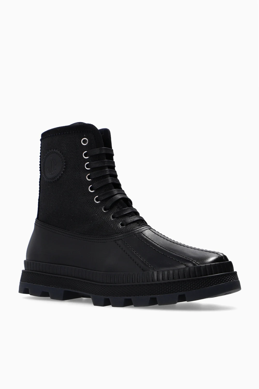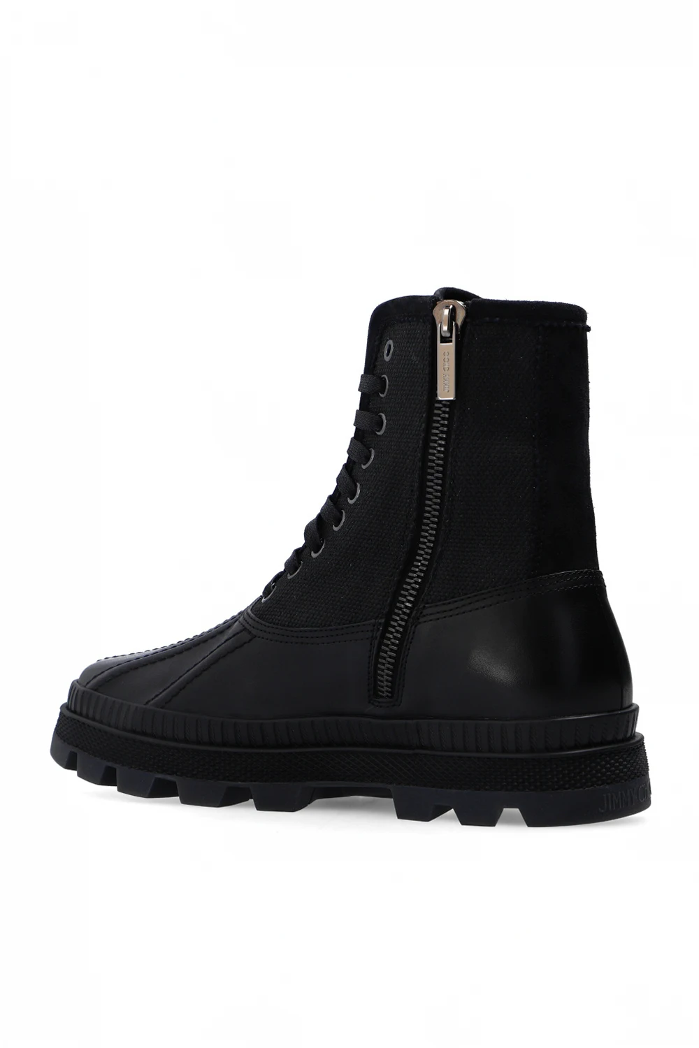 Czarne, sznurowane buty, model ‘Oskar’ Jimmy Choo. Wykonane ze skóry. Wykończone materiałem. Z boku zapinane na zamek. Ozdobione przeszyciami i naszywka z logo. Czarna, gumowa podeszwa.