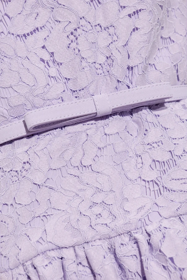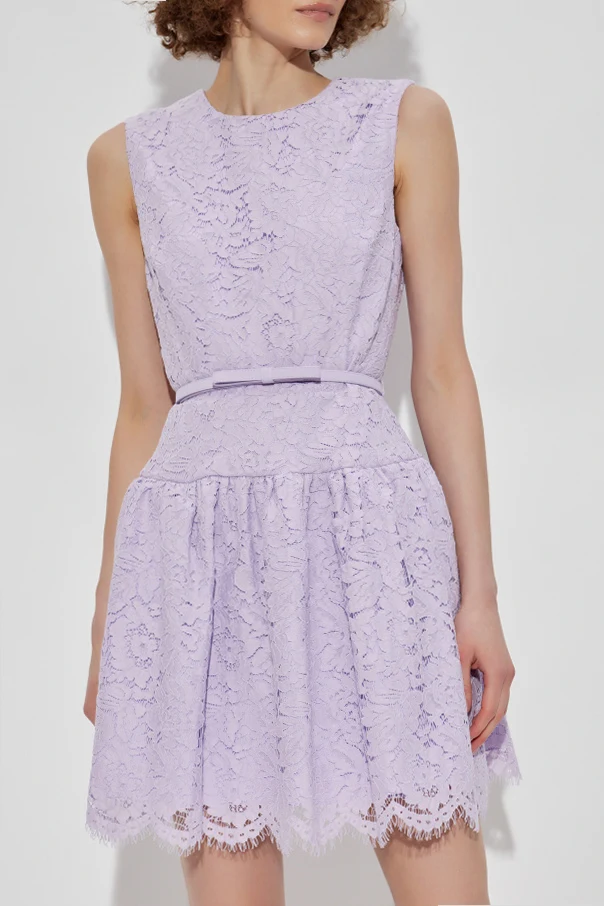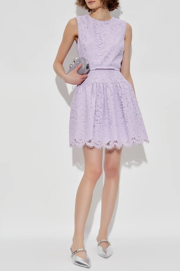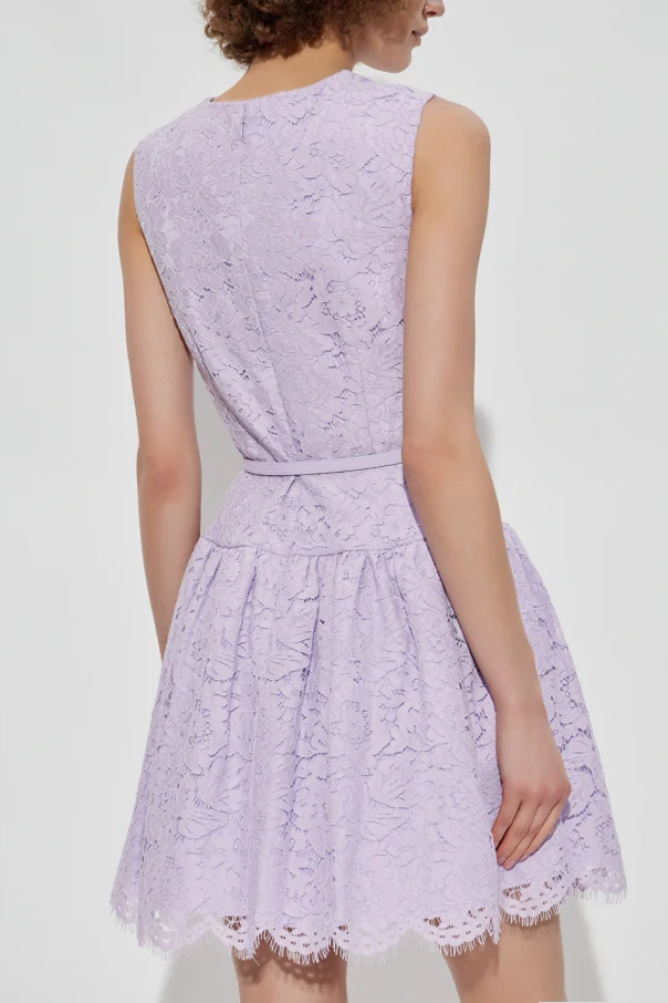 Koronkowa sukienka marki Self-Portrait to kwintesencja wyrafinowanej elegancji. Utrzymana w subtelnej, fioletowej tonacji, zachwyca wysublimowanym krojem: dopasowana góra bez rękawów oraz rozkloszowana, lekko marszczona spódnica tworzą sylwetkę pełną dziewczęcego wdzięku. Klasyczny, okrągły dekolt nadaje całości ponadczasowego charakteru.