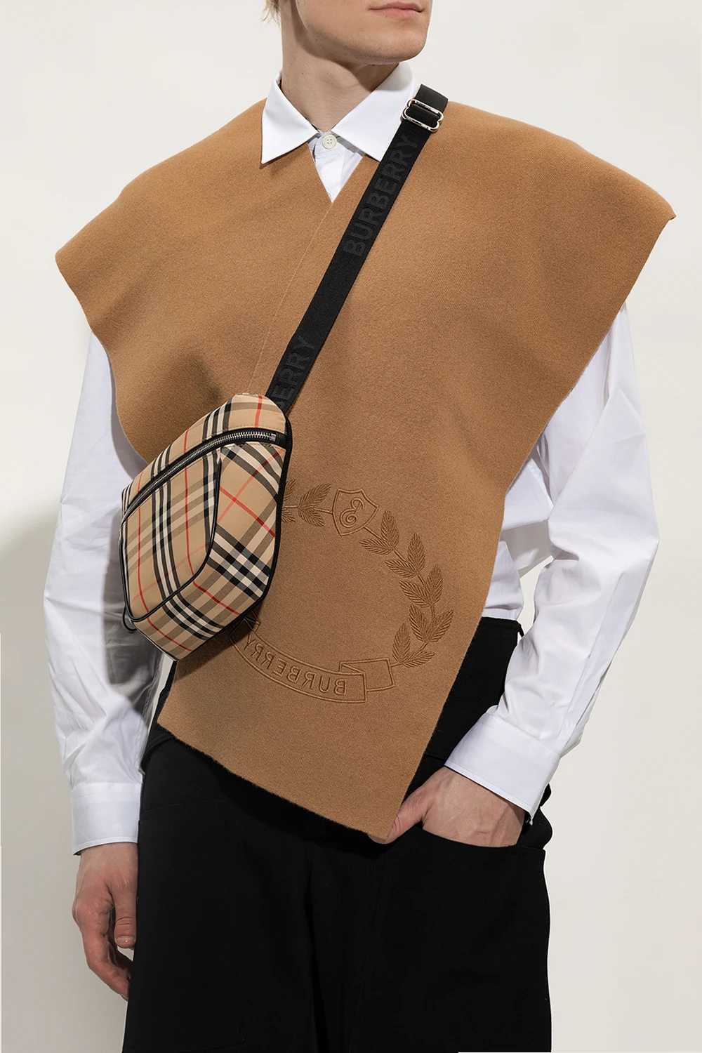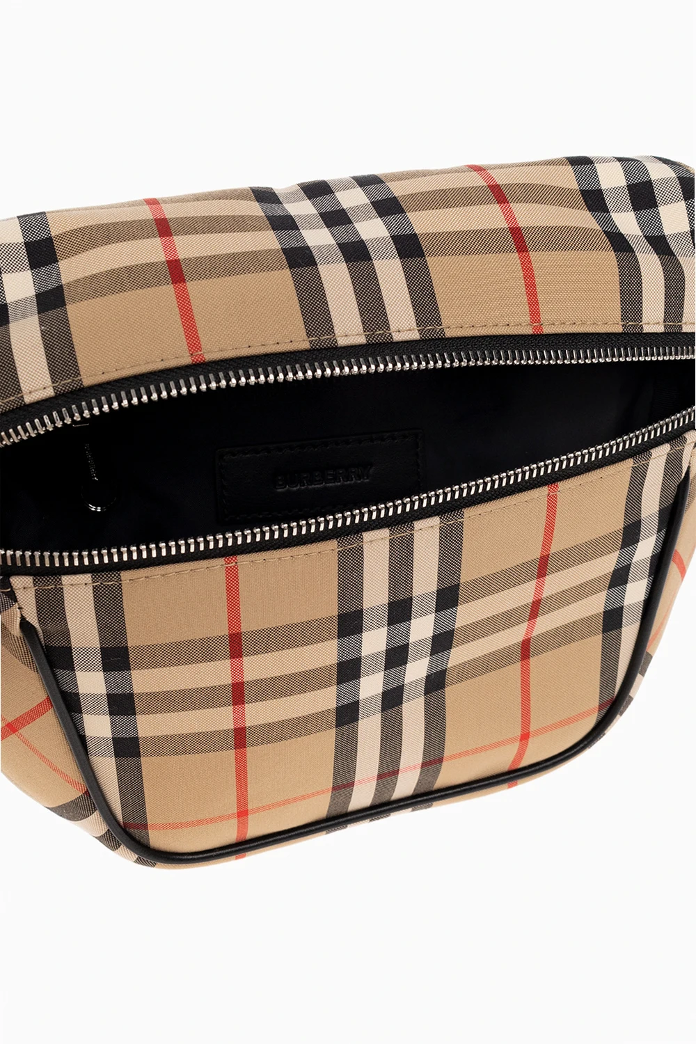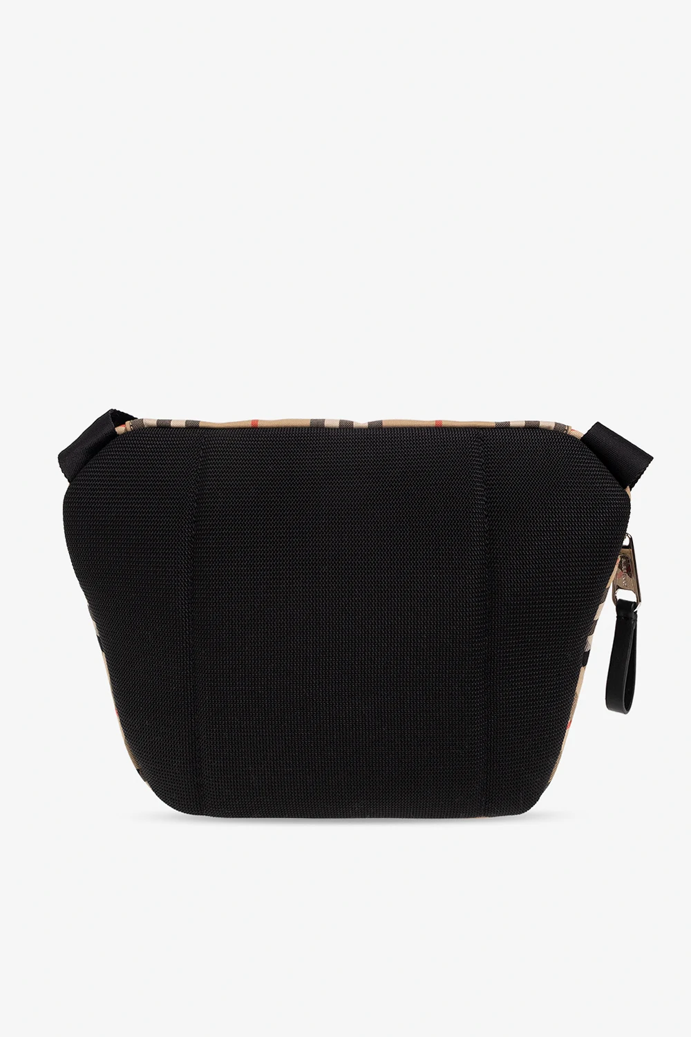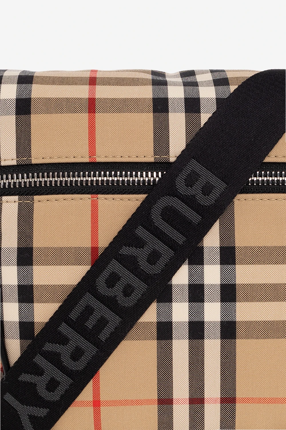 Beżowo-czarna torba na ramię, model ‘Archive’ Burberry. Wykonana z materiału ozdobionego wzorem w kolorową charakterystyczną kratę. Zamykana na zamek. Regulowany pasek. Wewnątrz komora i kieszeń zamykana na zamek. Metalowe elementy w kolorze srebrnym.