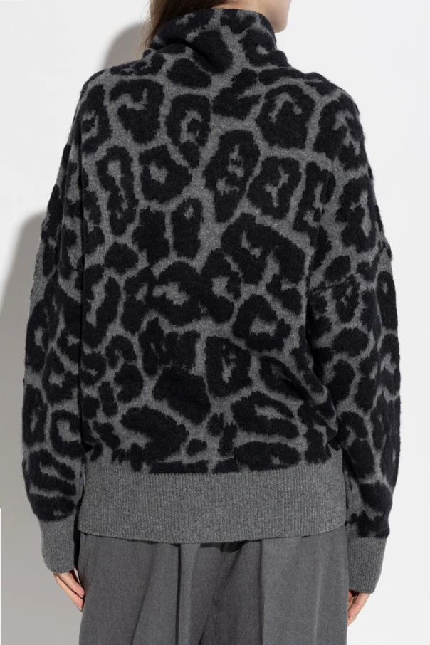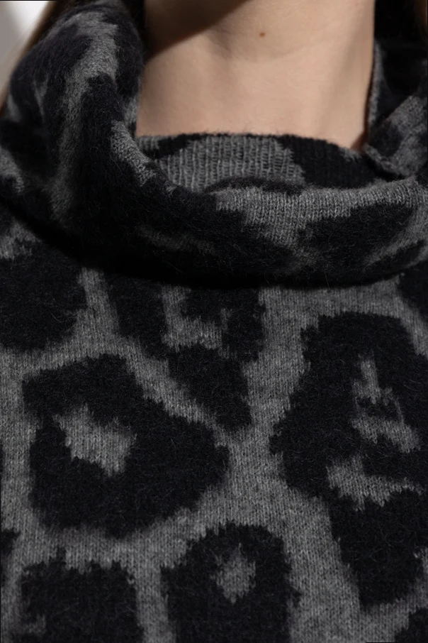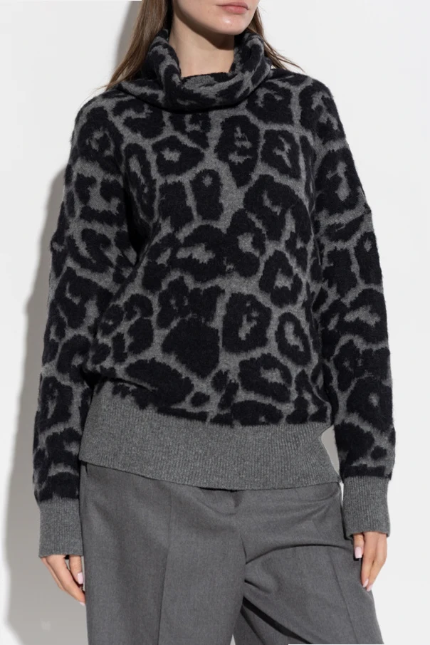 Golf z motywem zwierzęcym projektu Stelli McCartney to uosobienie szlachetnej prostoty i wyrafinowanego stylu. Klasyczny fason o luźnym kroju z szerokim, podwijanym kołnierzem typu turtleneck czaruje swobodą oraz elegancją, jednocześnie zapewniając wyjątkowy komfort noszenia. Długie rękawy oraz dół wykończone szerokimi, prążkowanymi ściągaczami podkreślają ponadczasowy charakter swetra.