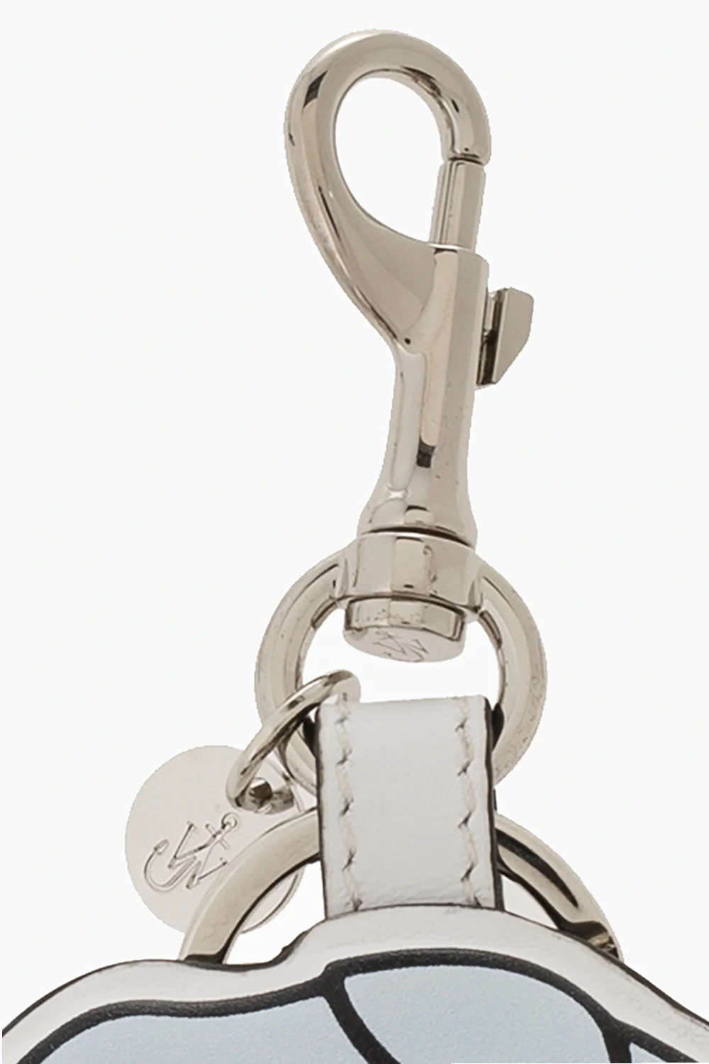 Brelok do kluczy w kolorze srebrnym JW Anderson. Ozdobiony skórzaną, kolorową zawieszką. Wykończony karabińczykiem.