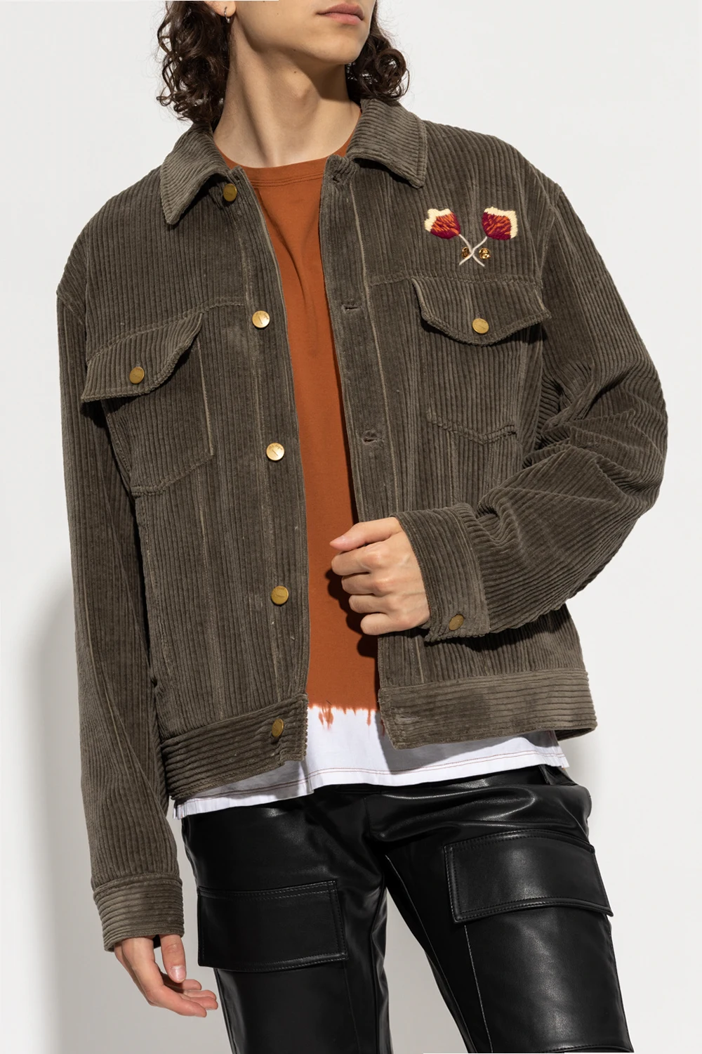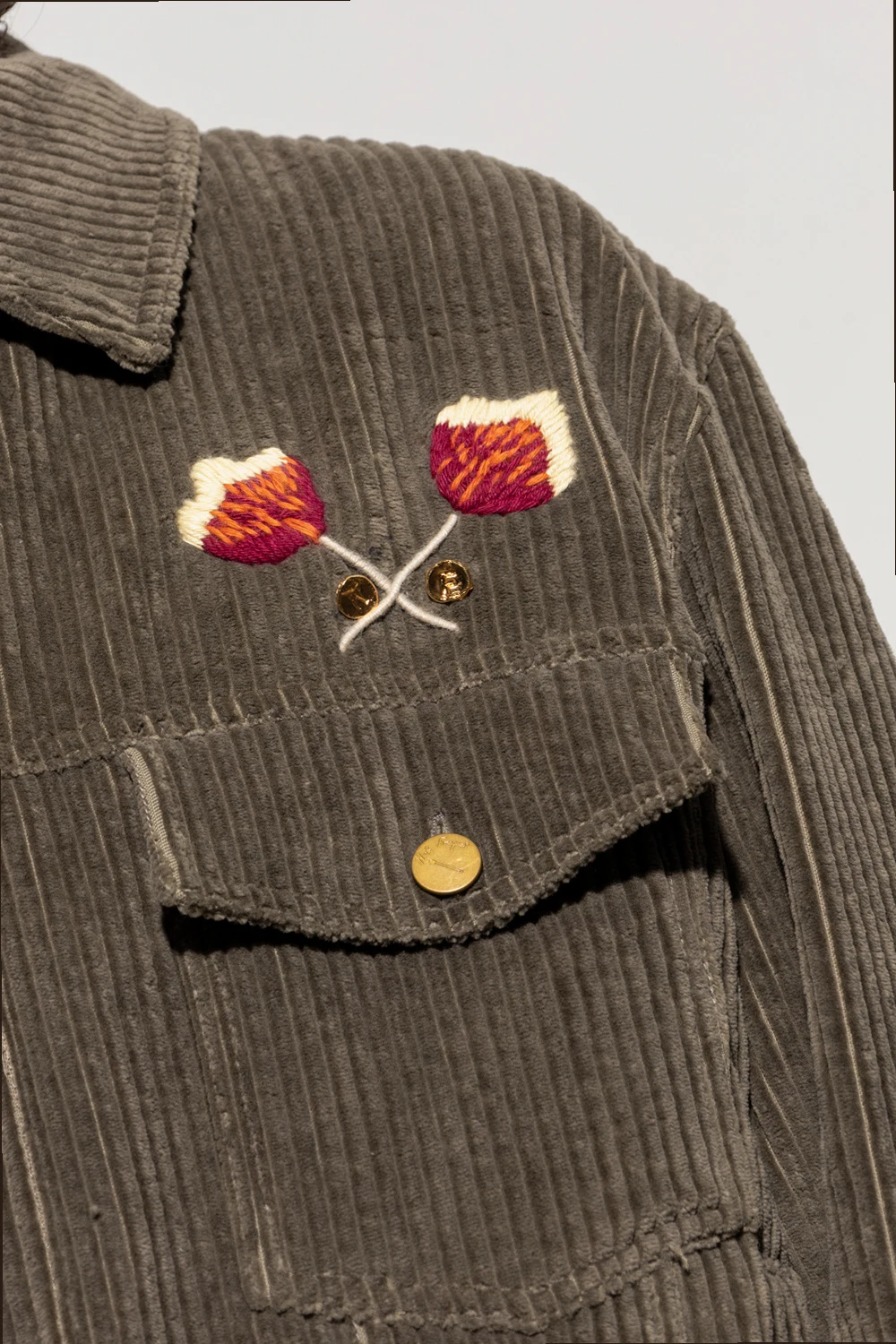 Ciemnozielona, sztruksowa kurtka Nick Fouquet. Zapinana z przodu na guziki. Ozdobiona kolorowym, wyszytym motywem kwiatowym oraz aplikacjami z logo w kolorze złotym. Cztery kieszenie: dwie wsuwane oraz dwie z patkami zapinanymi na guziki. Długie rękawy zakończone mankietami zapinanymi na guziki.