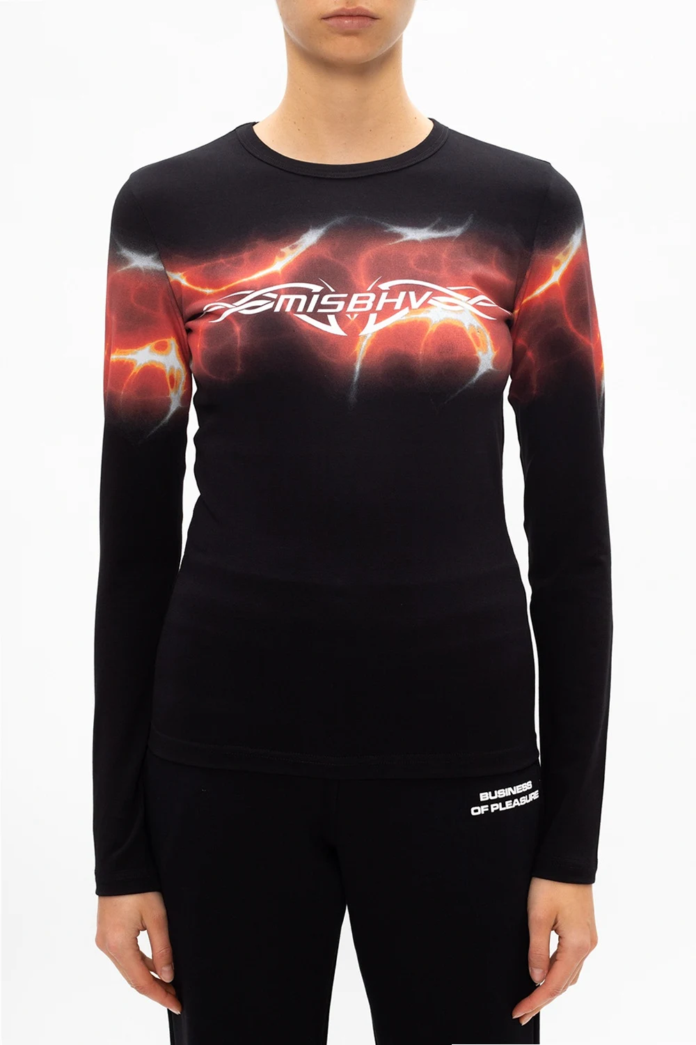 Czarny, bawełniany top z długimi rękawami, model 'Barb Wire' MISBHV. Ozdobiony kolorowym nadrukiem z białym logo. Okrągły dekolt.