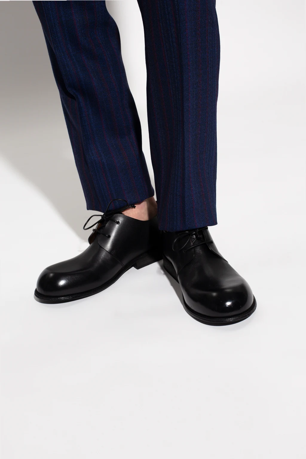 Czarne, sznurowane buty typu ‘derby’ Marsell. Wykonane ze skóry. Czarna podeszwa wykonana ze skóry i gumy.