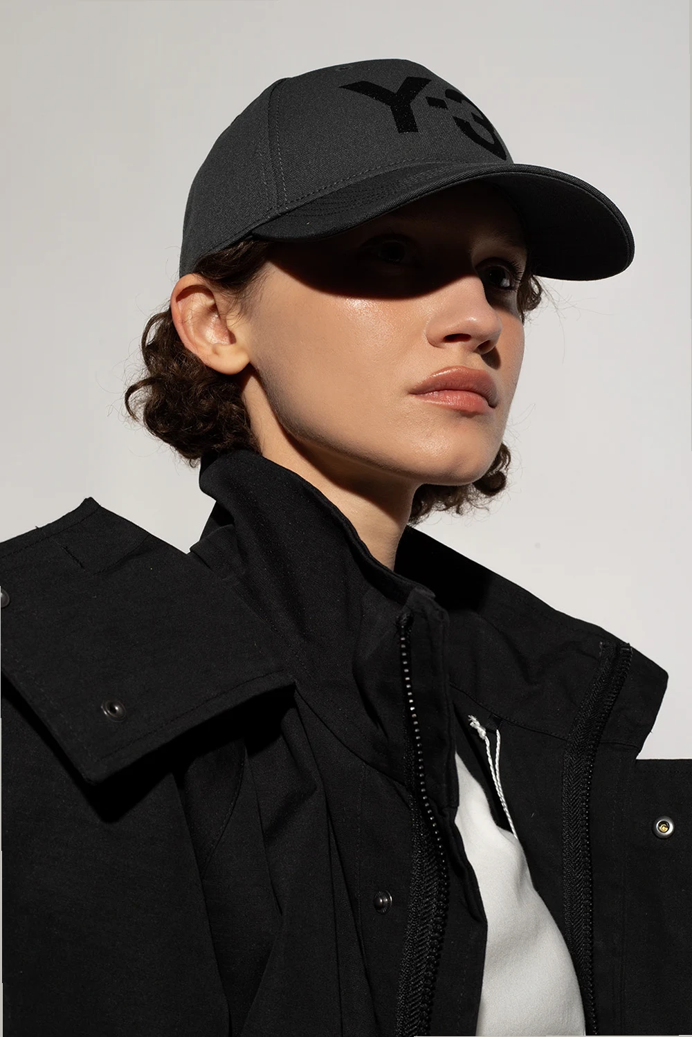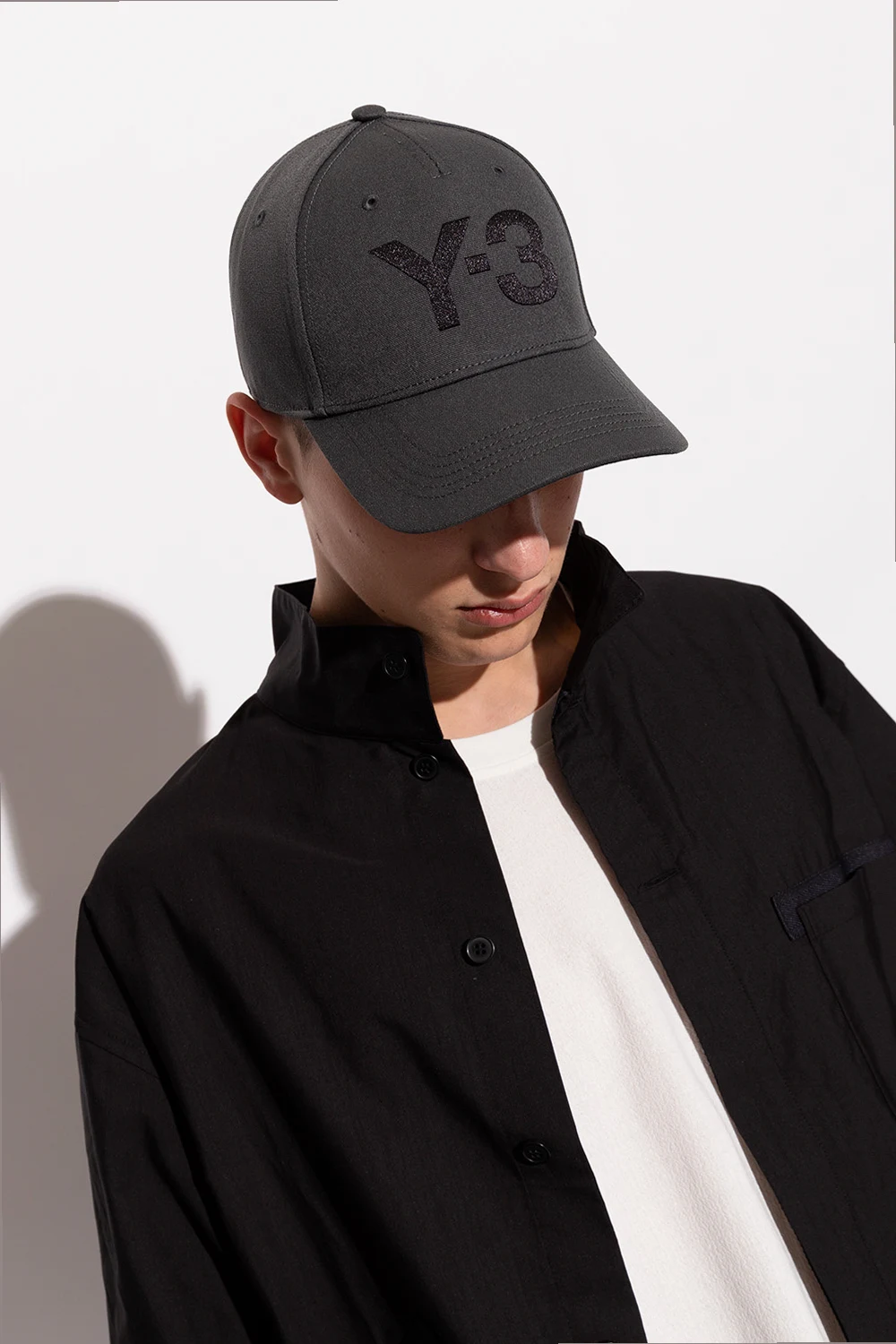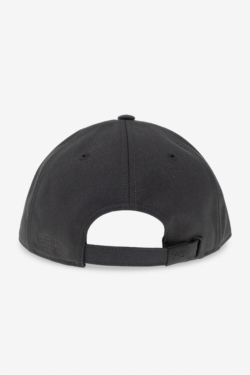Ciemnoszara czapka z daszkiem Y-3 Yohji Yamamoto. Wykonana z materiału z recyklingu. Z przodu czarne, wyszyte logo. Z tyłu regulowany pasek z klamrą.