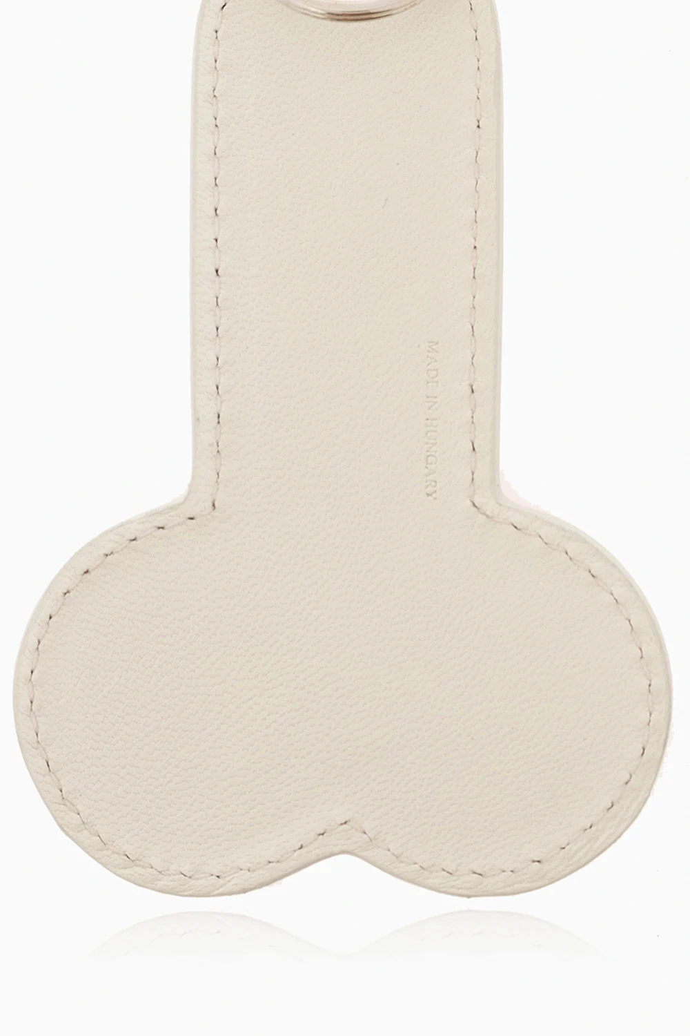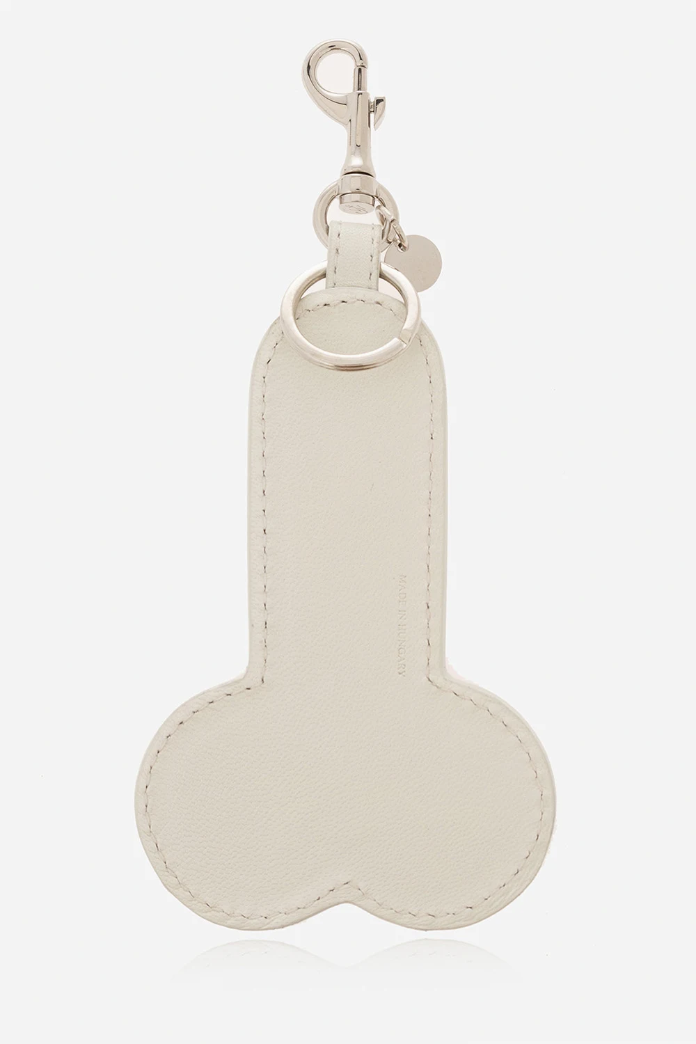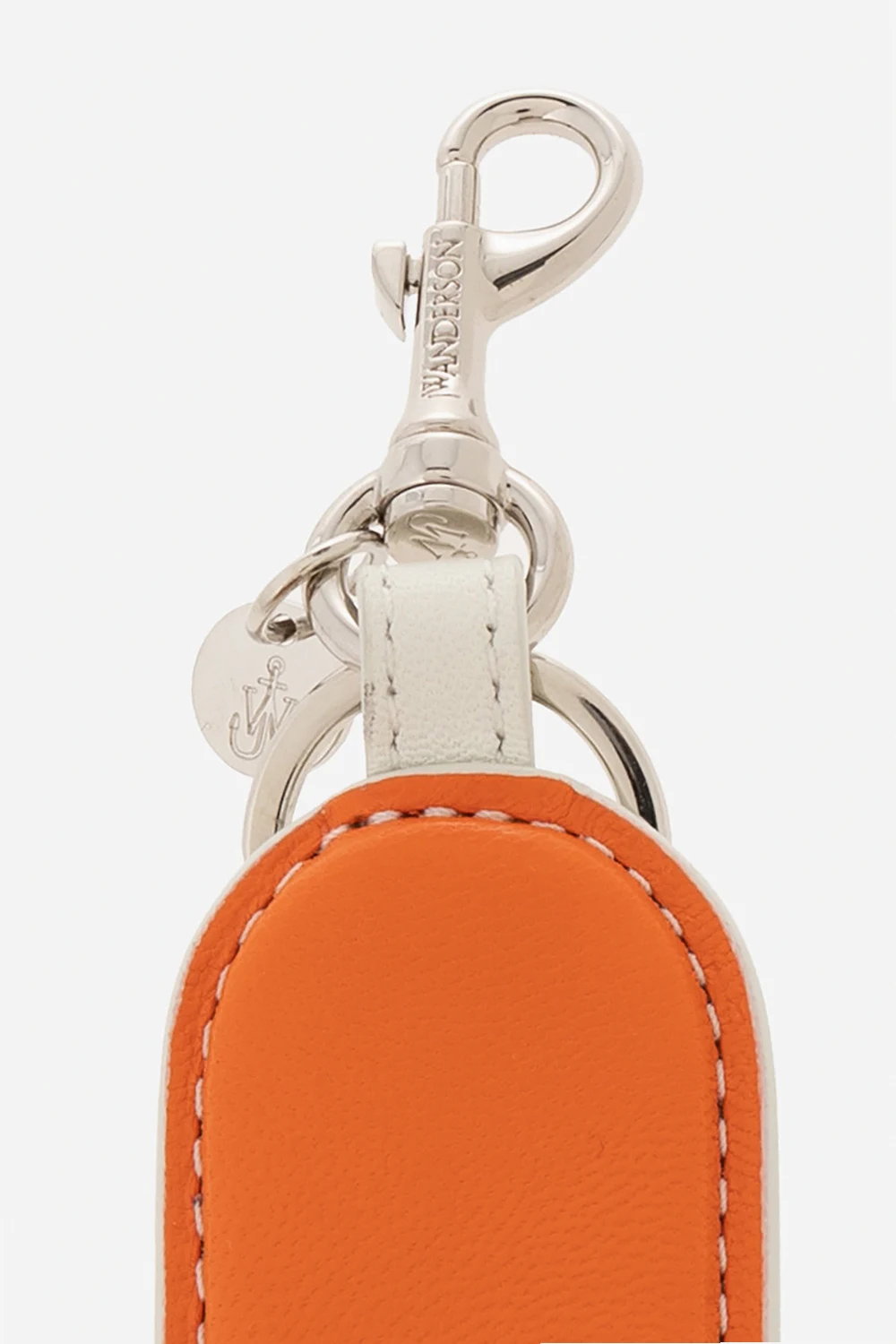 Brelok do kluczy w kolorze srebrnym JW Anderson. Ozdobiony skórzaną, pomarańczowo-białą zawieszką. Wykończony karabińczykiem.