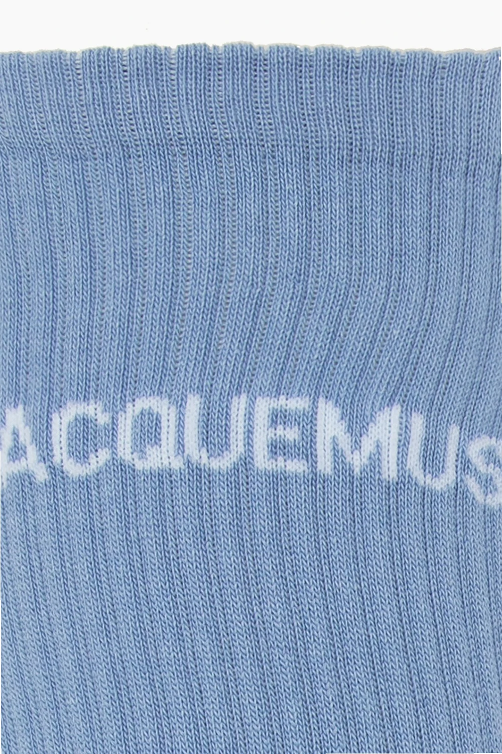 Niebieskie, bawełniane, prążkowane skarpety Jacquemus. Ozdobione wyszytym logo w kolorze białym.