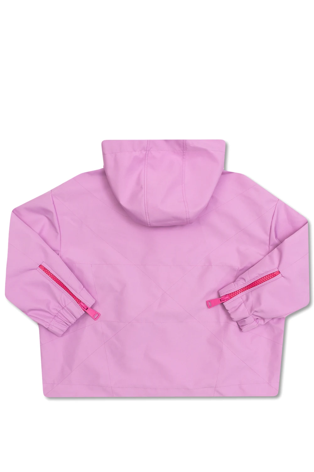 Różowa kurtka Khrisjoy. Zapinana na zamek. Kaptur ściągany dekoracyjnymi trokami z wyszytym logo w kolorze czarnym. Dwie kieszenie wsuwane. Długie rękawy wykończone zapięciem na zamek.