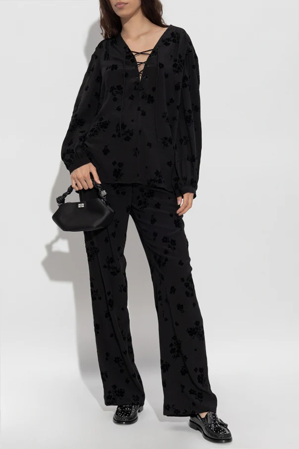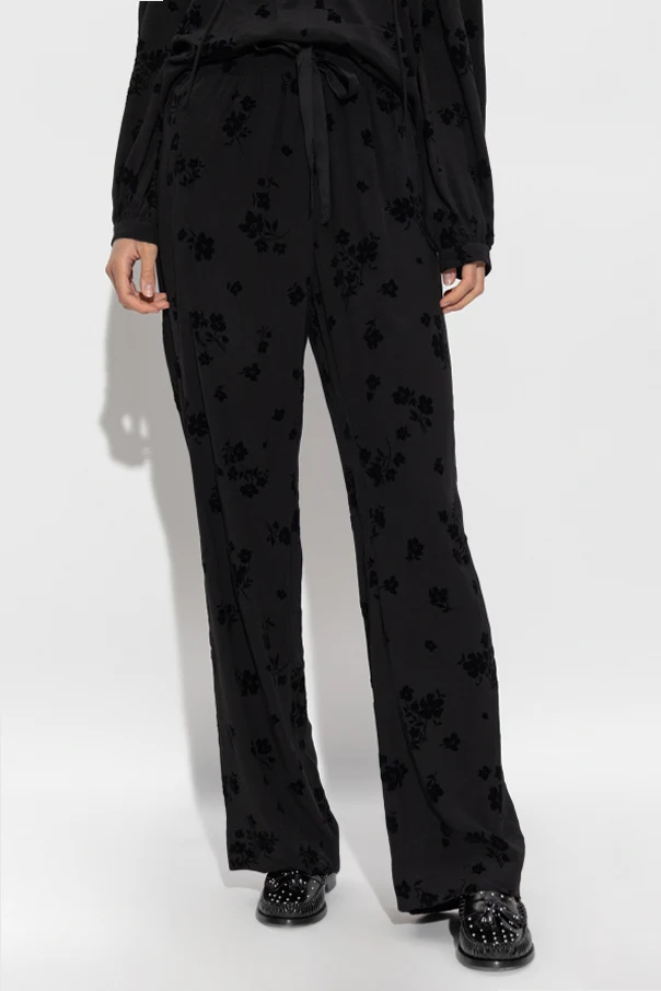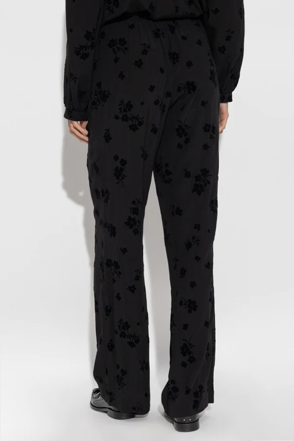 Spodnie „Poma” marki Zadig & Voltaire to synonim wyrafinowanej swobody. Ich luźny krój z prostymi, szerokimi nogawkami zapewnia niezwykłą wygodę, nie tracąc przy tym na elegancji. Całość spowija subtelny, flokowany wzór kwiatowy – motyw roślinny, który delikatnie odbija światło, nadając materiałowi ekskluzywną fakturę oraz niepowtarzalny charakter.