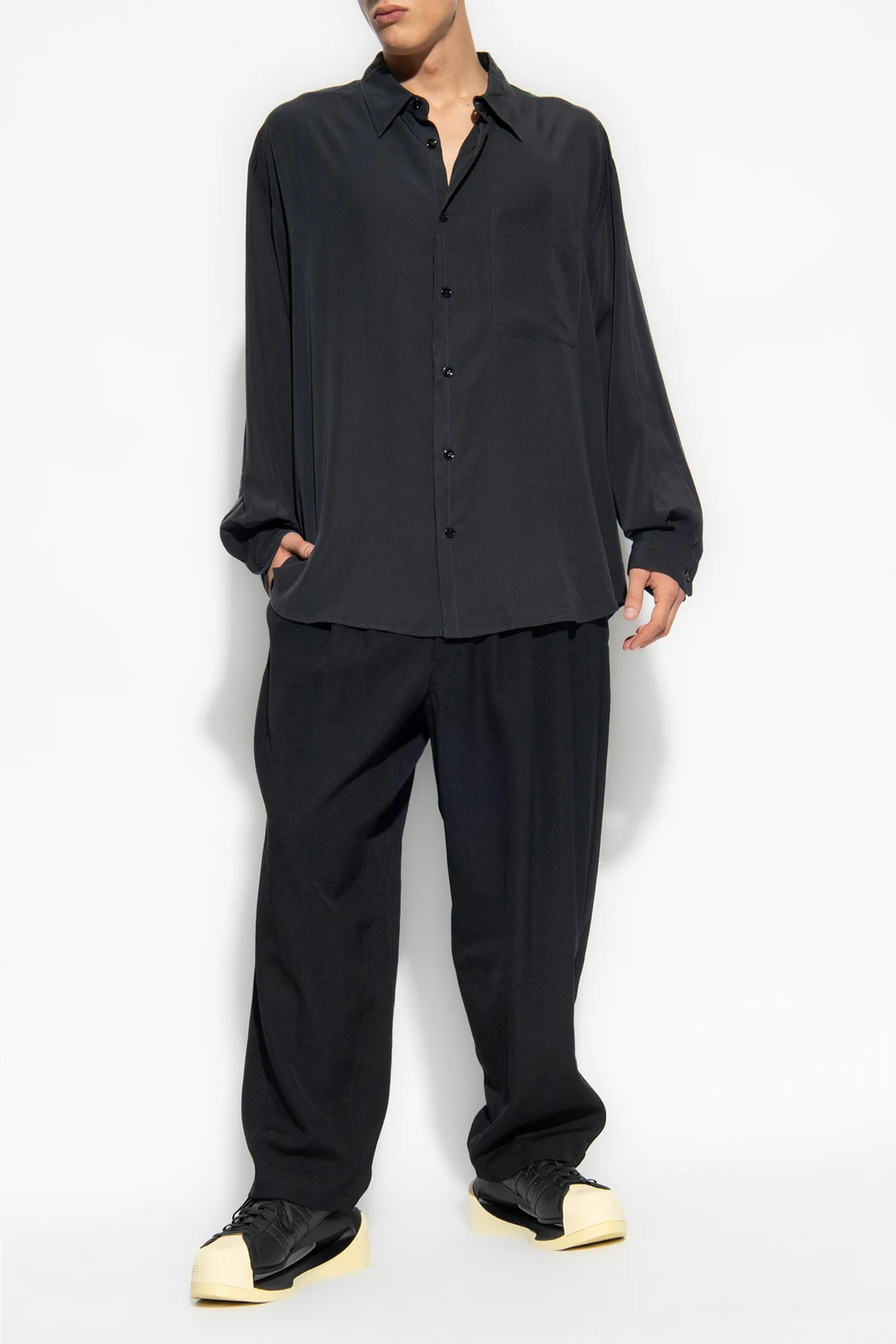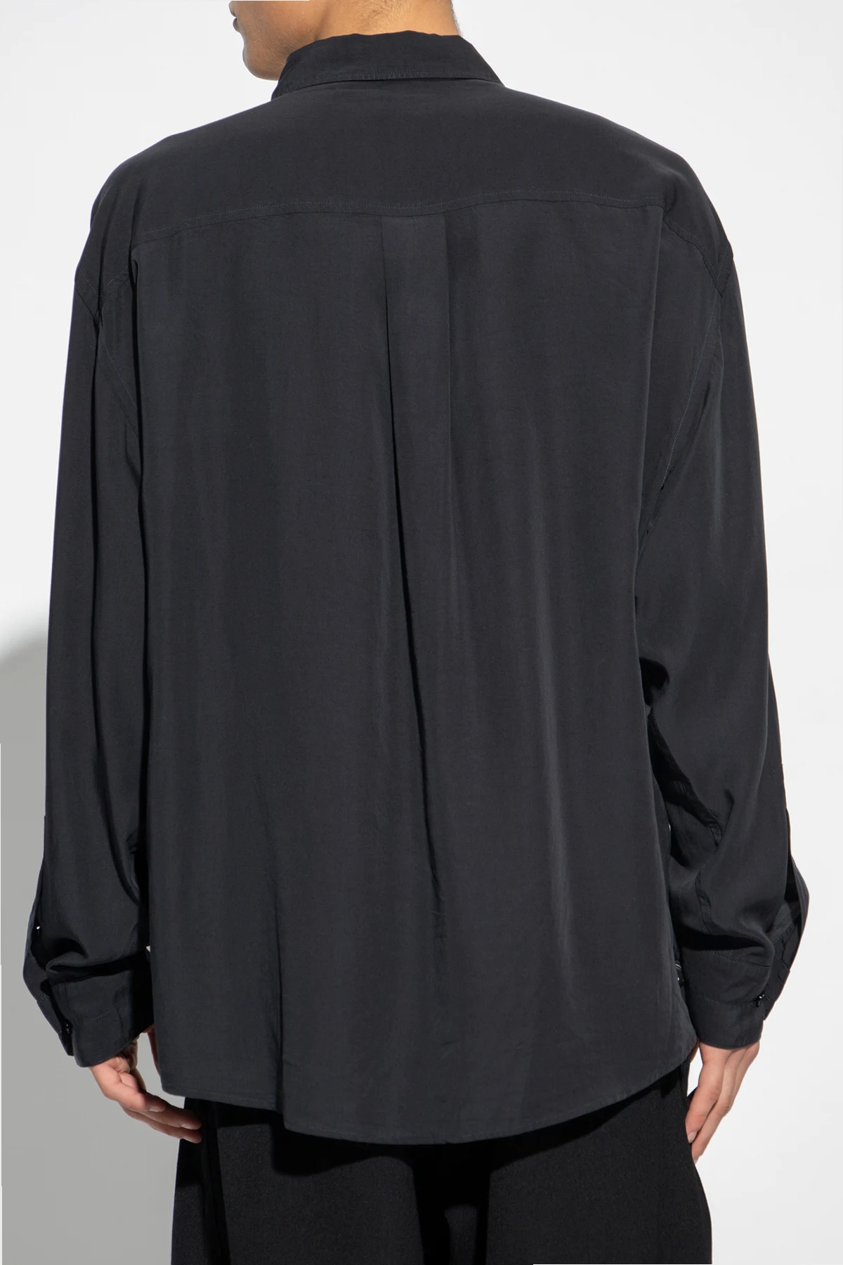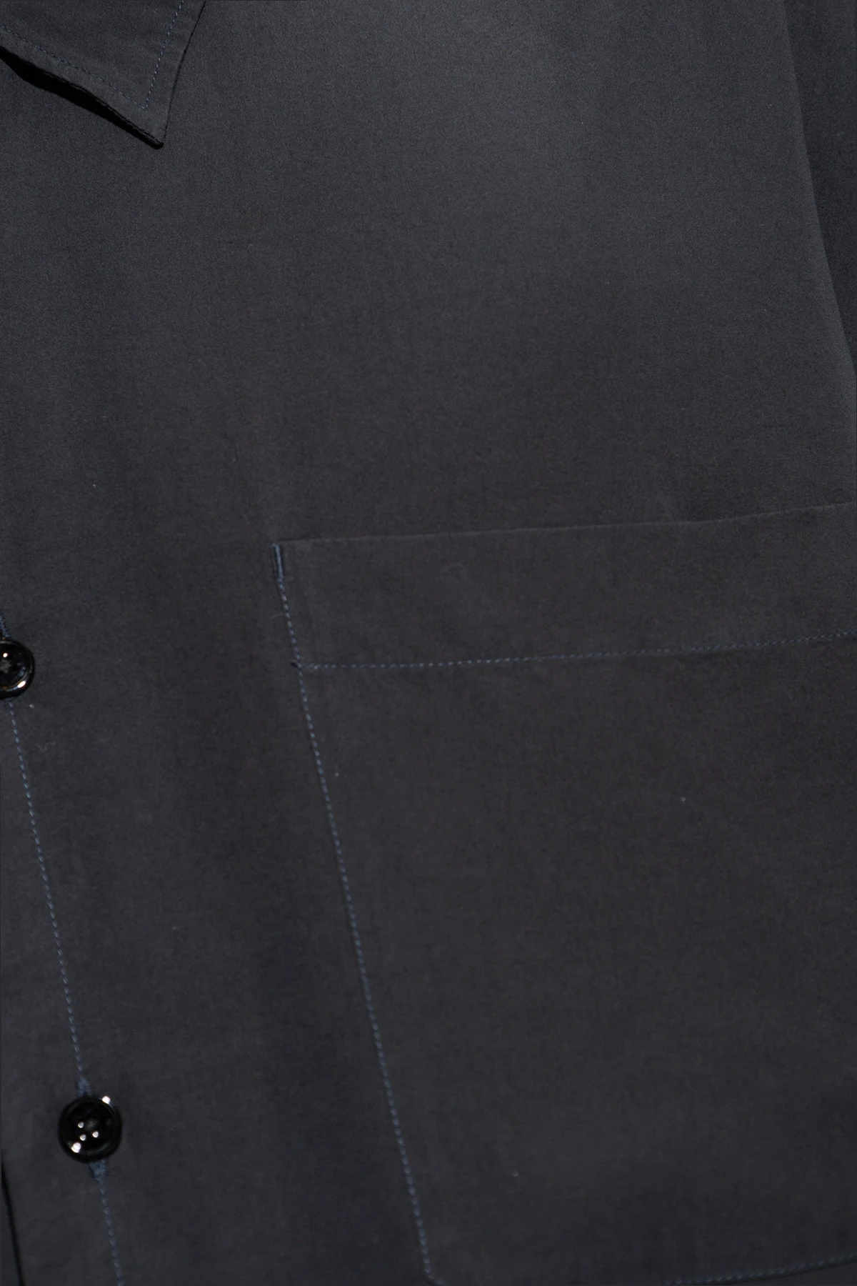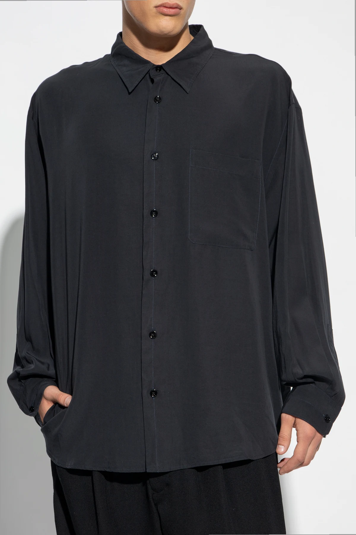 Czarna koszula typu ‘oversize’ Lemaire. Zapinana na guziki. Dekolt wykończony kołnierzem. Z przodu wsuwana kieszeń. Długie rękawy zakończone mankietami z zapięciem na guziki.