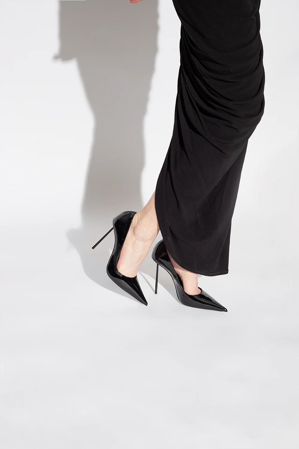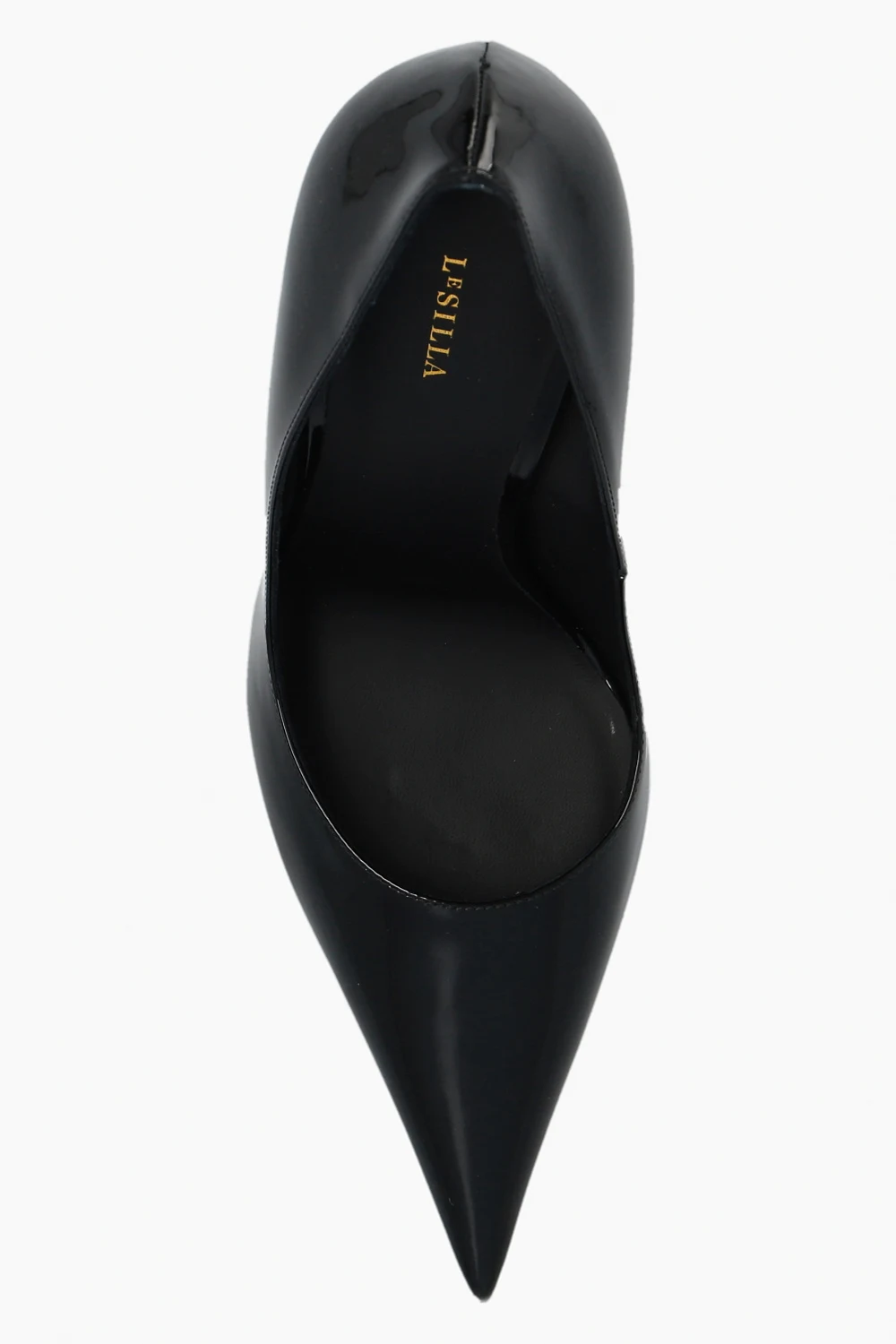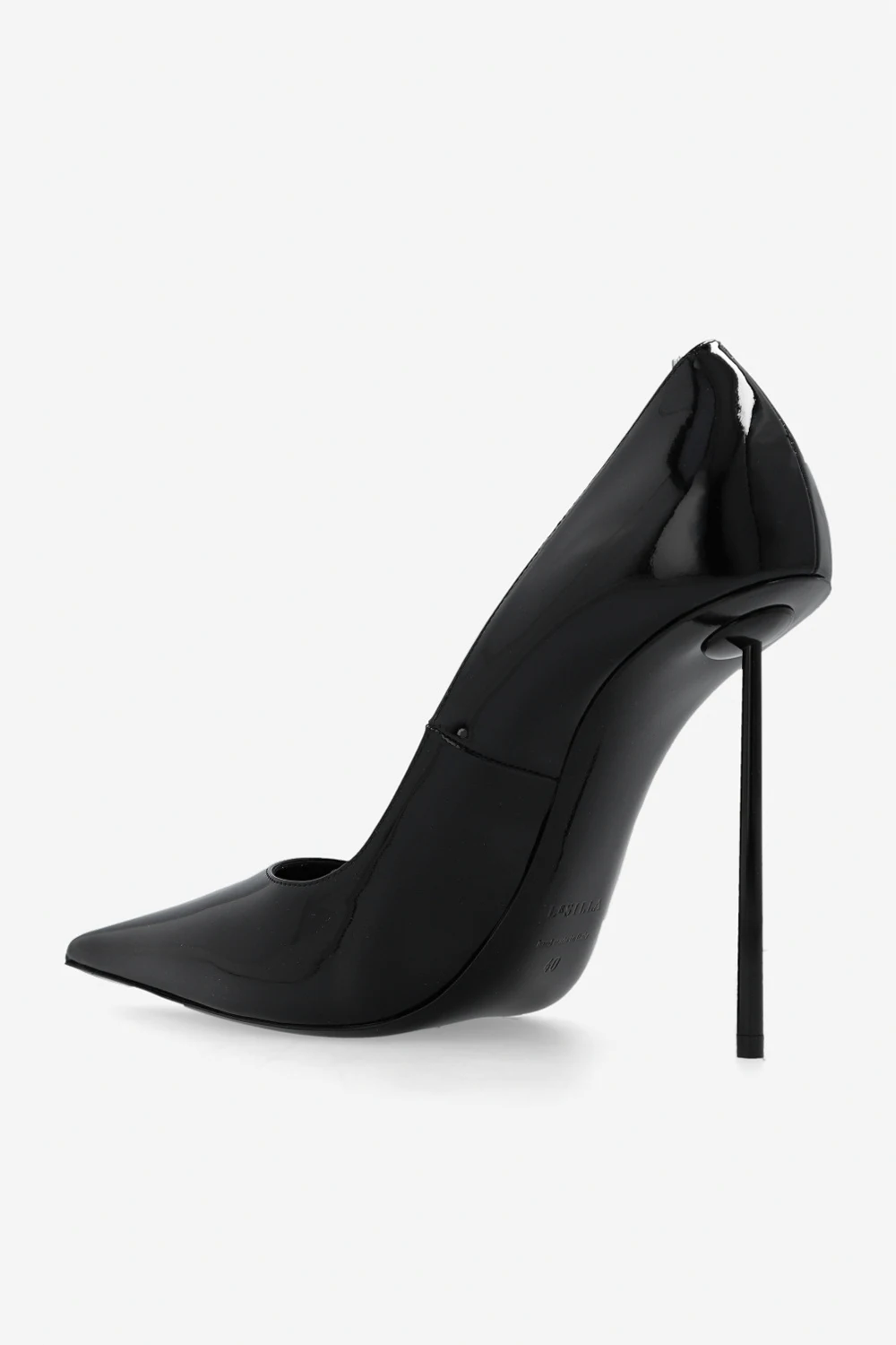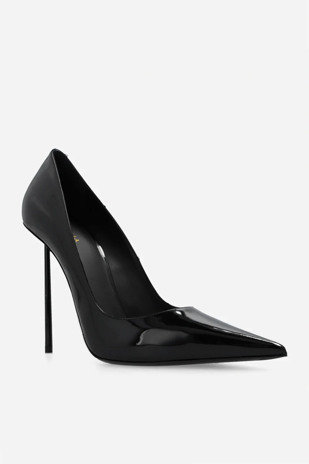 Czarne, lakierowane szpilki, model ‘Bella’ Le Silla. Wykonane ze skóry. Nosek w szpic. Czarna, skórzana podeszwa wykończona gumą.