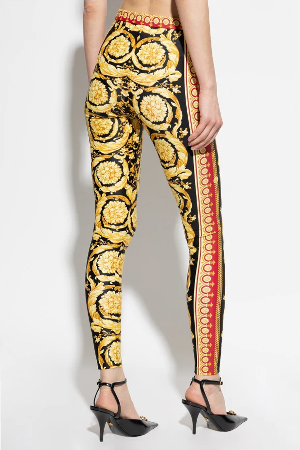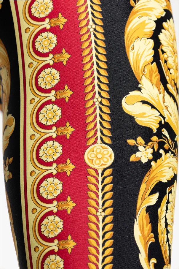 Leginsy z nadrukiem Barocco marki Versace to esencja wyrafinowanego stylu, który harmonijnie łączy ponadczasową elegancję z odważną nowoczesnością. Dopasowany krój z wysokim stanem pięknie modeluje sylwetkę, zapewniając doskonałe podkreślenie kobiecych kształtów.