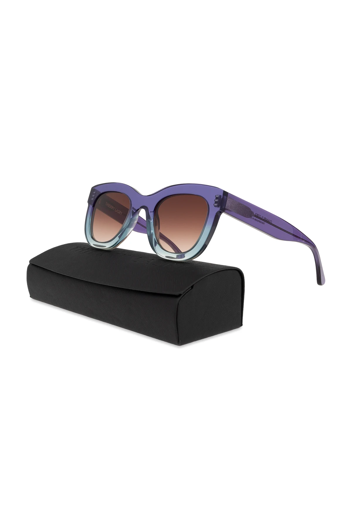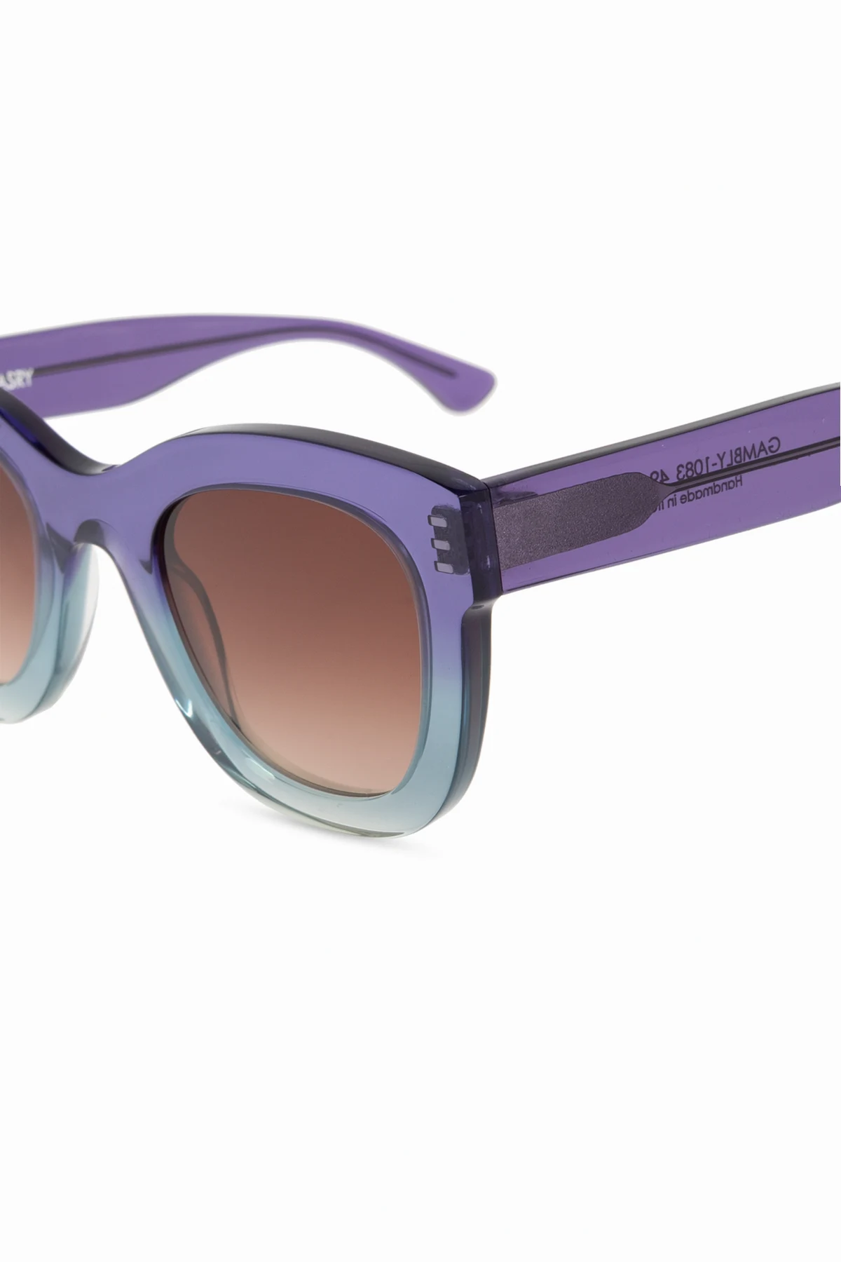 Oprawki wykonane z jednego kawałka wysokiej jakości tworzywa sztucznego zachwycają subtelnie cieniowanym gradientem kolorystycznym, przechodzącym od fioletu na górze do jasnoniebieskiego na dole. Brązowe, barwione soczewki zapewniają pełną ochronę przed promieniowaniem UV, skutecznie chroniąc oczy.