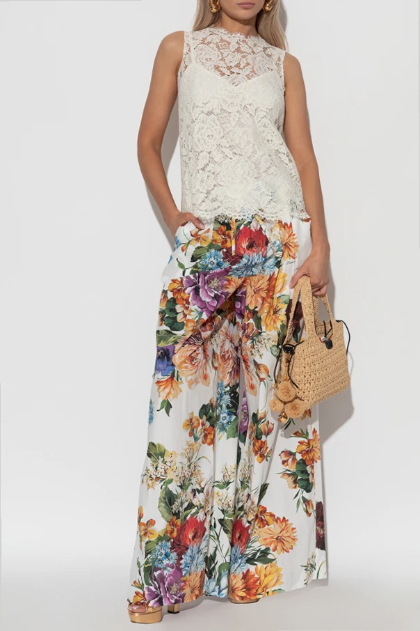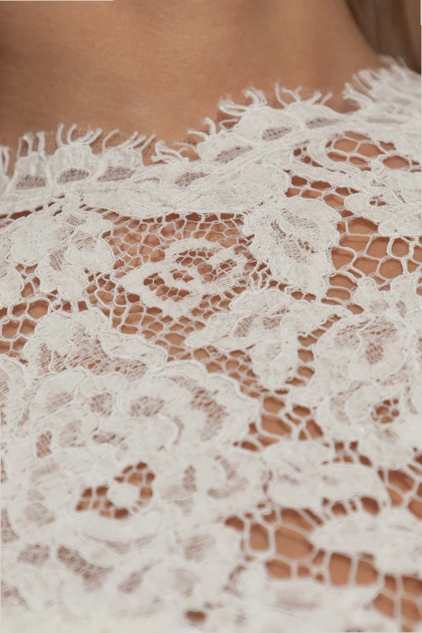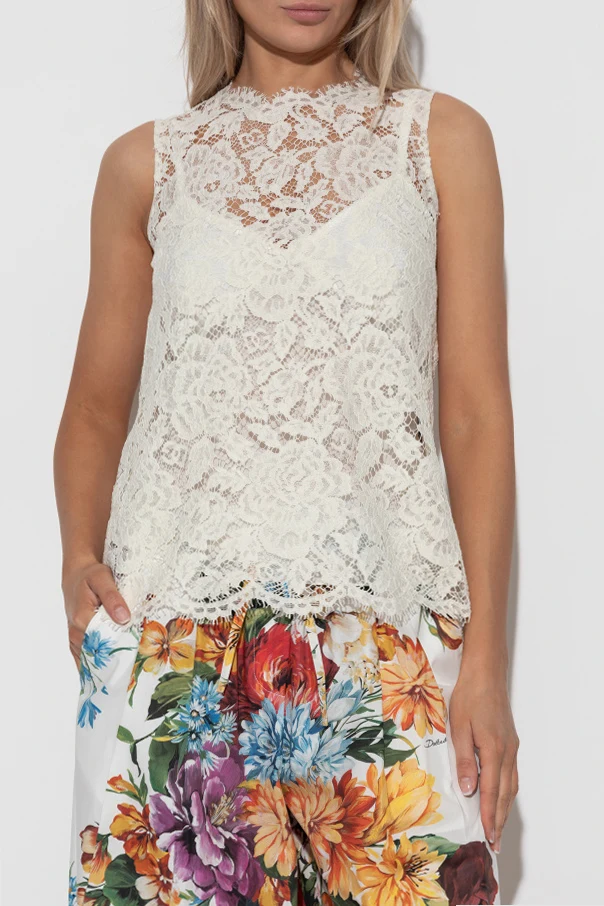 Koronkowy top bez rękawów sygnowany przez wybitnych mistrzów włoskiego krawiectwa, urzeka niepowtarzalnym połączeniem lekkości i wyrafinowania. Jego prosty, luźny krój oraz półokrągły dekolt harmonijnie podkreślają sylwetkę, a transparentna koronka o bogatym, kwiatowym wzorze zachwyca precyzją wykonania. Subtelne "ząbki" koronkowe zdobią krawędzie, akcentując dbałość o każdy detal.