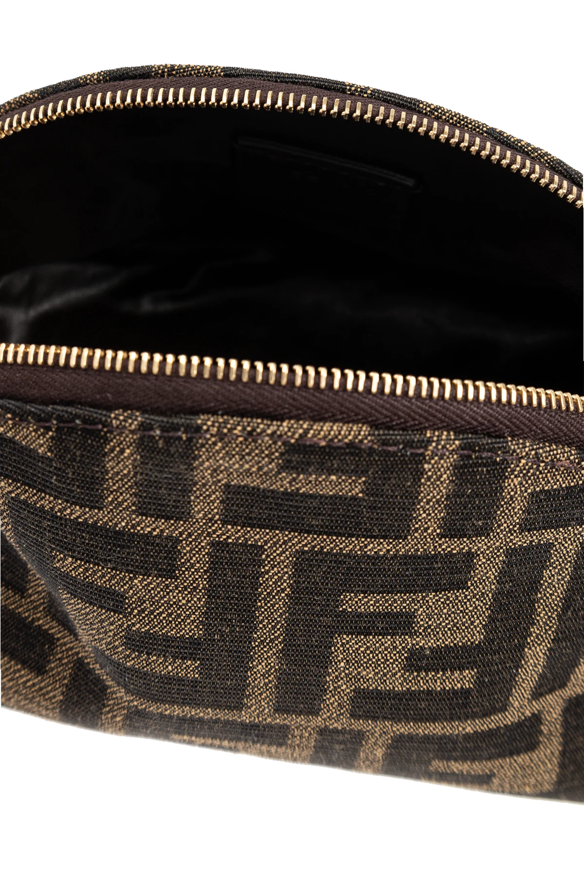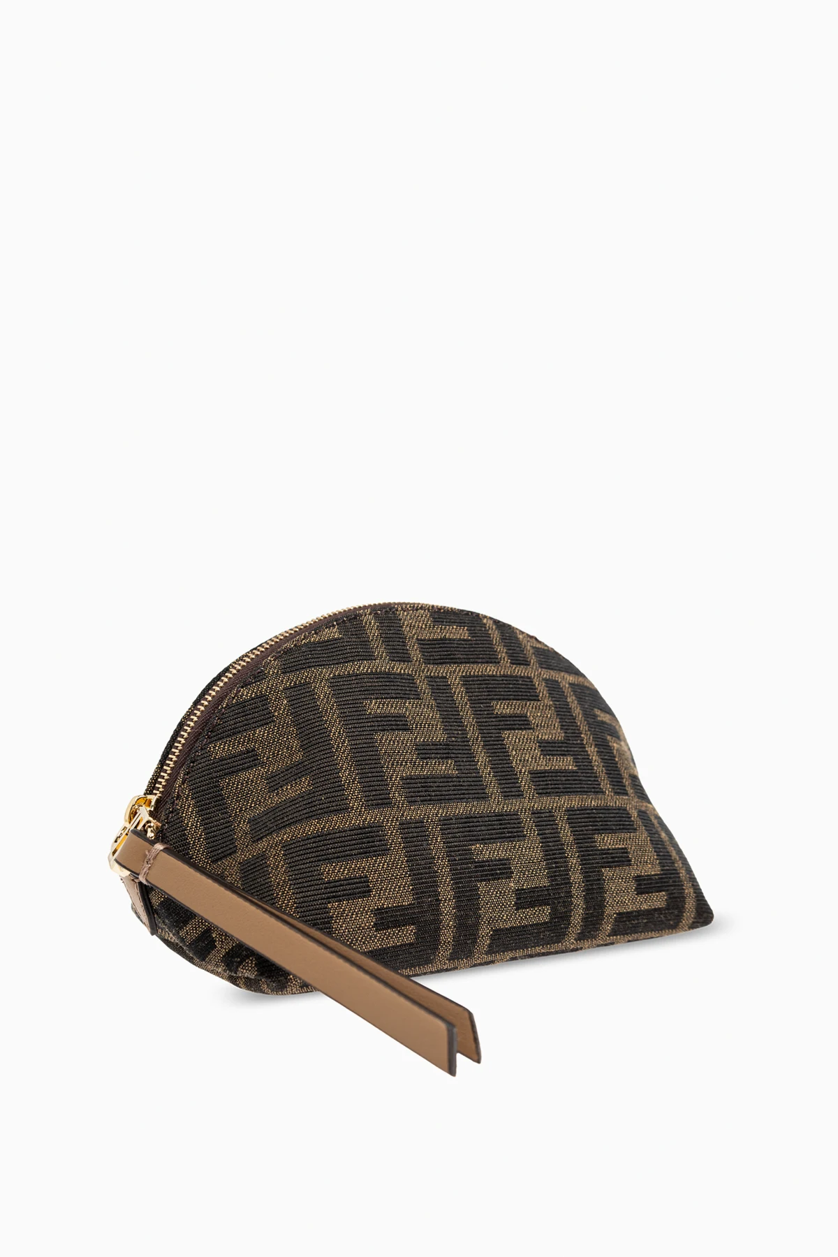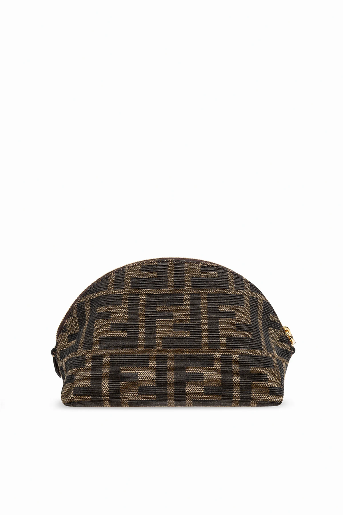 Przedstawiamy kosmetyczkę z monogramem od renomowanego włoskiego domu mody Fendi, który od dziesięcioleci zachwyca świat swoimi luksusowymi wyrobami. Ta wyjątkowa kosmetyczka wyróżnia się eleganckim, zaokrąglonym kształtem i półokrągłym zamkiem błyskawicznym na górze.