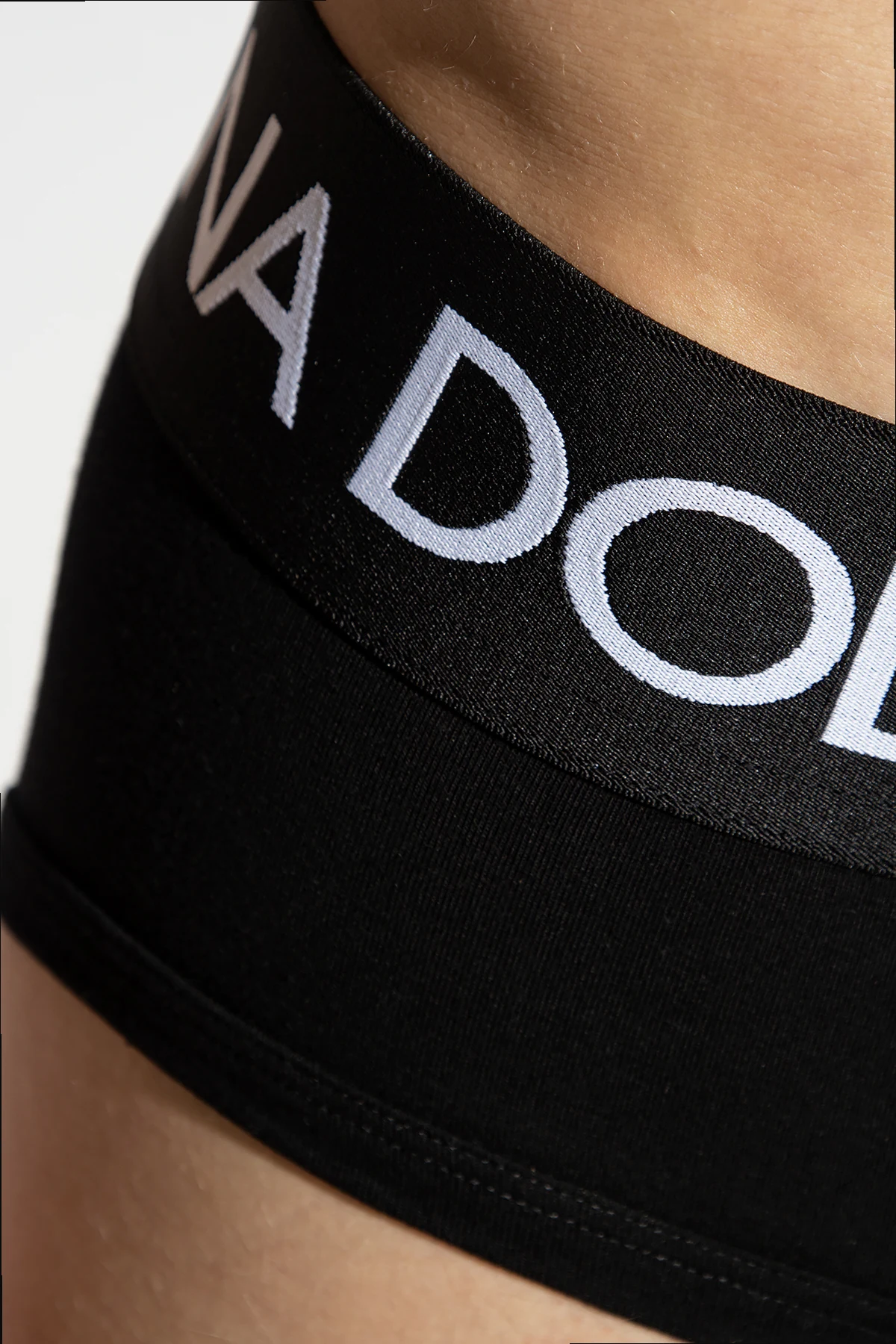 Dwupak czarnych slipów Dolce & Gabbana. Wykonane z bawełny. W pasie wszyta guma ozdobiona wyszytym logo w kolorze białym.