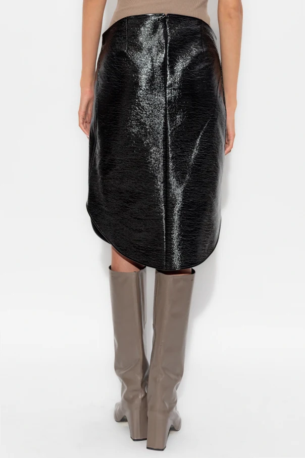 Spódnica z logo Courrèges to kwintesencja nowoczesnej elegancji, która harmonijnie łączy wyszukaną estetykę z francuskim dziedzictwem projektowania. Cechuje ją starannie zaprojektowany, dopasowany fason midi, rozszerzający się ku dołowi, z subtelnie zaokrąglonymi wykończeniami bocznymi — to finezyjny detal podkreślający jej unikatową formę.