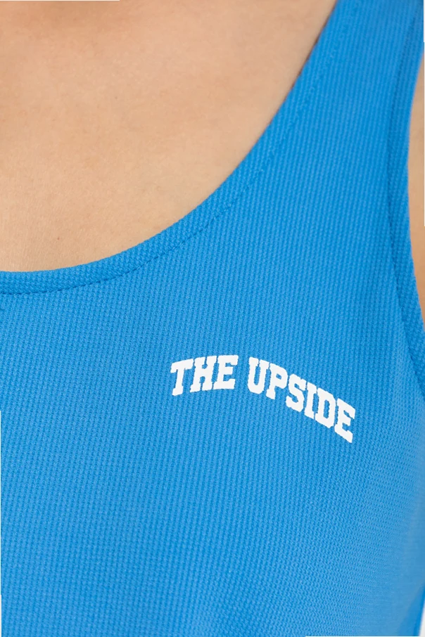 Unikatowy detal stanowi kontrastowy, biały napis z nazwą marki THE UPSIDE umieszczony subtelnie po lewej stronie klatki piersiowej. Brak zbędnych ozdób i czystość linii podkreślają nieprzemijającą ponadczasowość projektu.