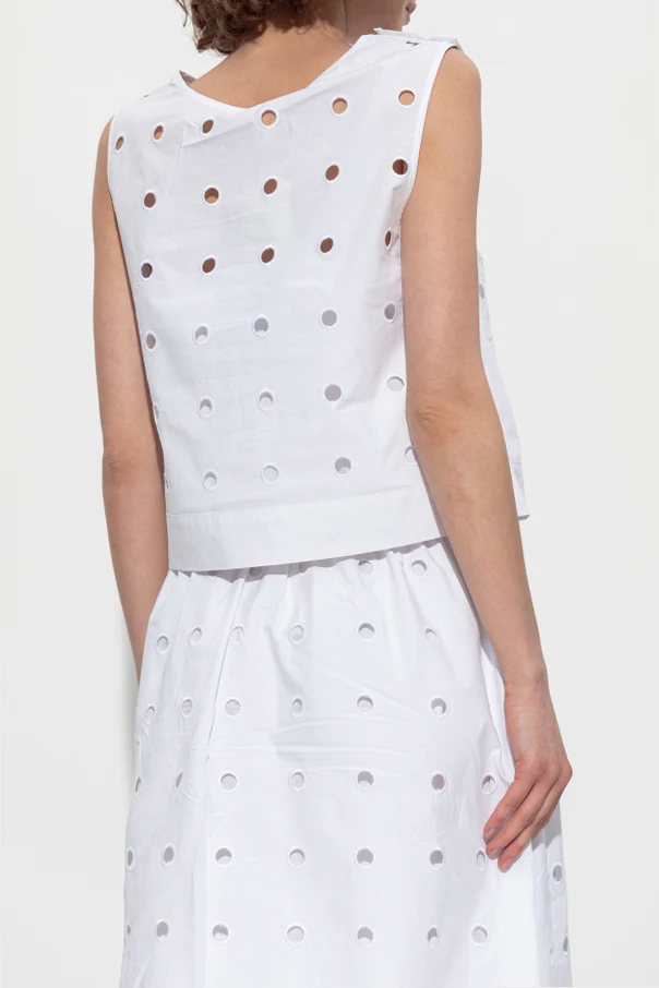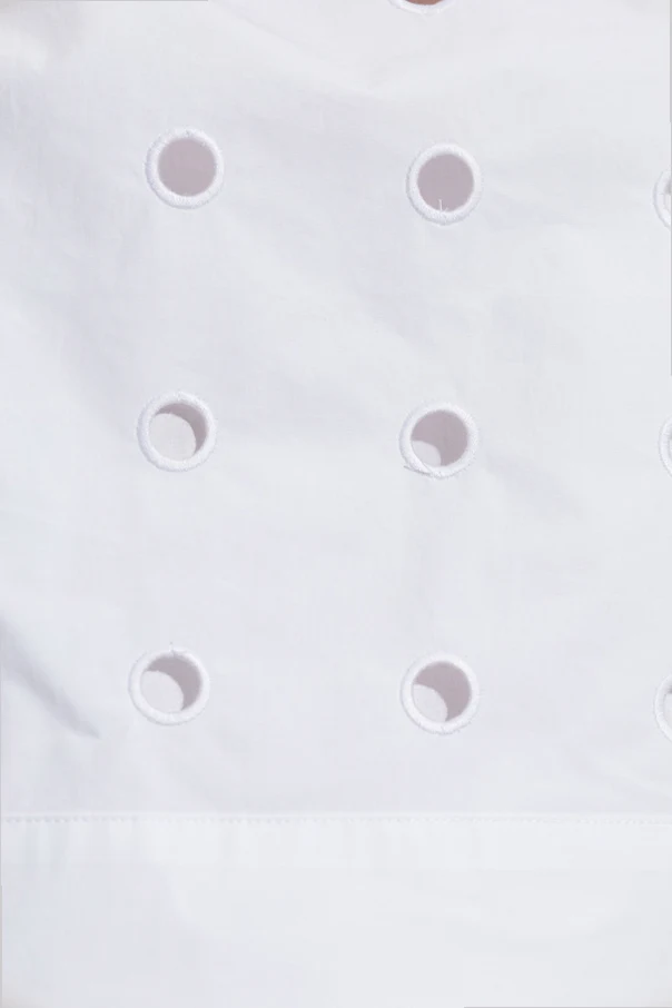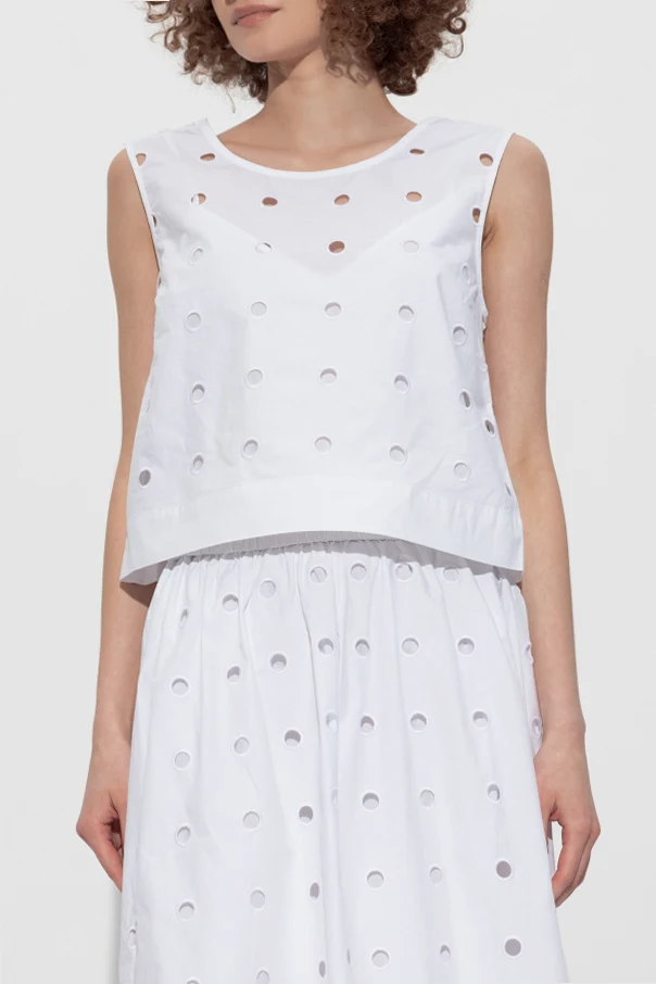 Ażurowy top “Peggy” marki POSSE to przejaw współczesnej elegancji w minimalistycznej odsłonie. Geometryczny, lekko skrócony fason typu boxy uzupełniony został szerokimi ramiączkami i subtelnym, okrągłym dekoltem. Sercem projektu jest ażurowy wzór – starannie rozmieszczone, obszyte wycięcia nadające wyjątkowego, nowoczesnego charakteru.