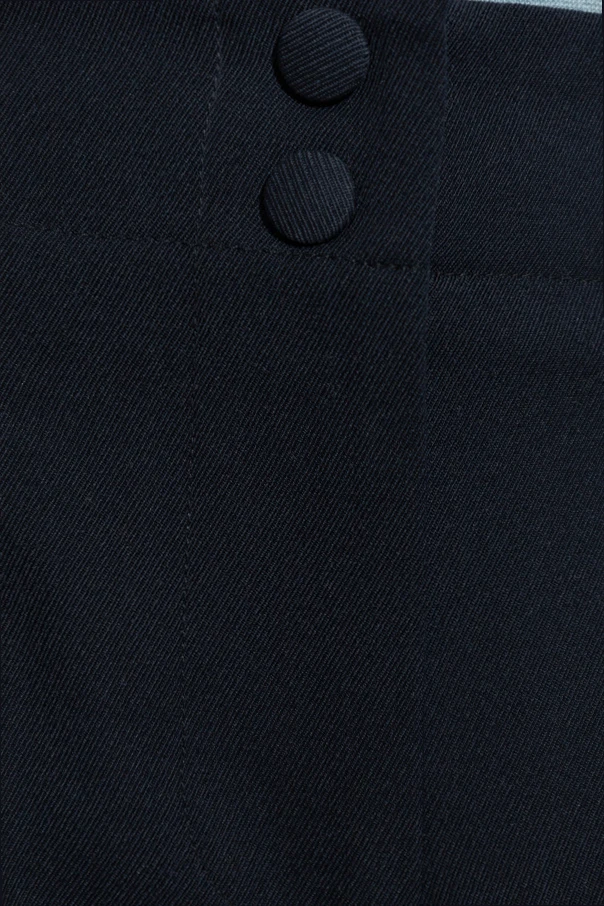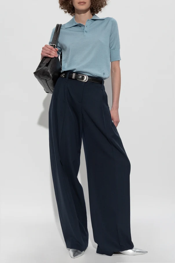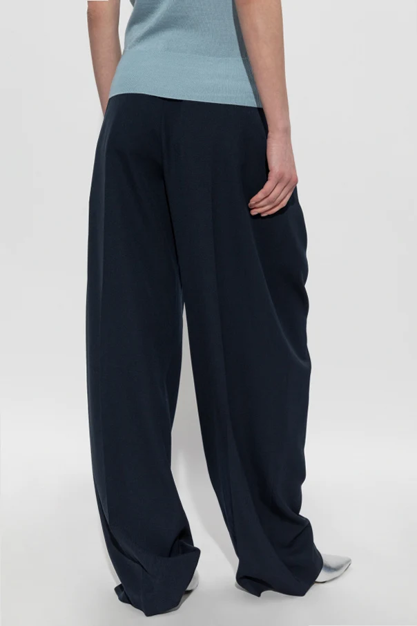 Spodnie z szerokimi nogawkami w kant autorstwa Alexandra McQueena to kwintesencja wyrafinowanej elegancji, w której tradycja spotyka się z nowoczesnością. Model ten wyróżnia się wysokim stanem oraz szerokimi, prostymi nogawkami, subtelnie zwężającymi się ku dołowi, co zapewnia poczucie swobody i ponadczasowy charakter. Wyrazisty kant, poprowadzony przez środek każdej nogawki zarówno z przodu, jak i z tyłu, nadaje sylwetce lekkości i klasy.