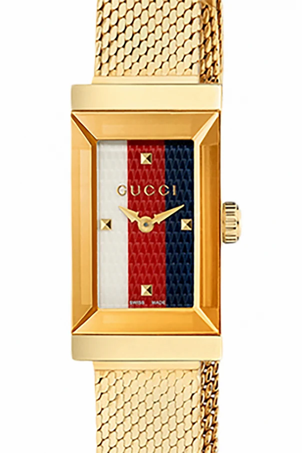 Przedstawiamy zegarek 'G-Frame' - doskonałe dzieło marki Gucci , które łączy w sobie ponadczasowe piękno i nowoczesny luksus. Wykonany z najwyższej jakości stali nierdzewnej, pokrytej złotą powłoką, zachwyca swoim ekskluzywnym wyglądem.