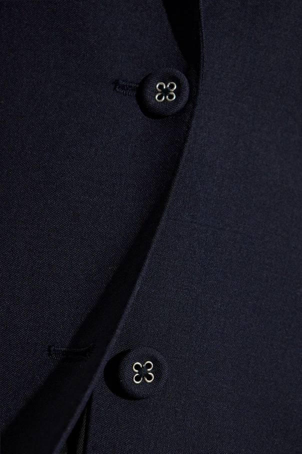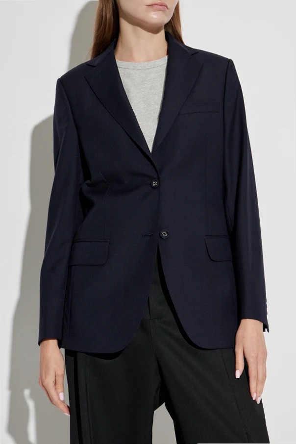 Prezentowany model wykonany został z wysokogatunkowej, gładkiej wełny dziewiczej w głębokim granacie, którą cechuje szlachetność oraz niepowtarzalna faktura. Zewnętrzne detale, takie jak kieszenie z patkami czy brak widocznych logotypów, subtelnie podkreślają zamysł projektanta skoncentrowany na czystości formy i ponadczasowym szyku.