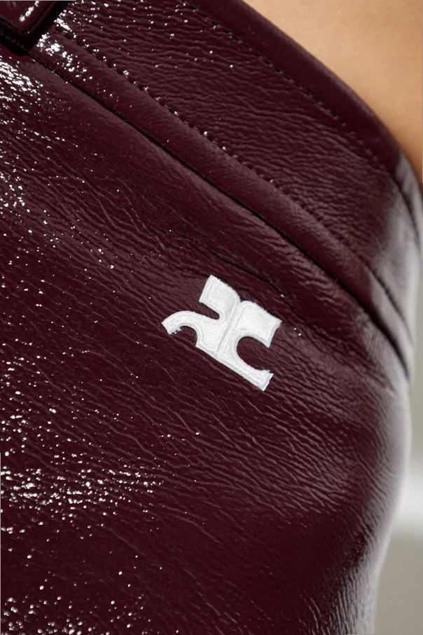 Krótka spódnica marki Courrèges to wyraz subtelnej nowoczesności i odwagi w projektowaniu. Utrzymana w szlachetnym, głębokim odcieniu bordo, zachwyca prostotą linii oraz lekko rozkloszowanym fasonem, który harmonijnie modeluje sylwetkę i wydobywa jej wdzięk. Zastosowanie wyselekcjonowanej, błyszczącej ekoskóry o luksusowej, lakierowanej fakturze nadaje całości charakteru oraz niepowtarzalnego blasku, przywołując na myśl arcydzieła haute couture.