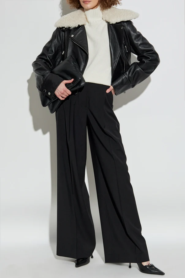 Spodnie w kant ‘Vela’ marki Sportmax stanowią kwintesencję ponadczasowej elegancji i mistrzowskiego krawiectwa. Wysoki stan oraz szerokie, mocno rozszerzane nogawki doskonale modelują sylwetkę, podkreślając jej szlachetną linię. Klasyczne kanty, precyzyjnie zaprasowane zarówno z przodu, jak i z tyłu, subtelnie wydłużają optycznie nogi, nadając całości wyrafinowanego, formalnego charakteru.