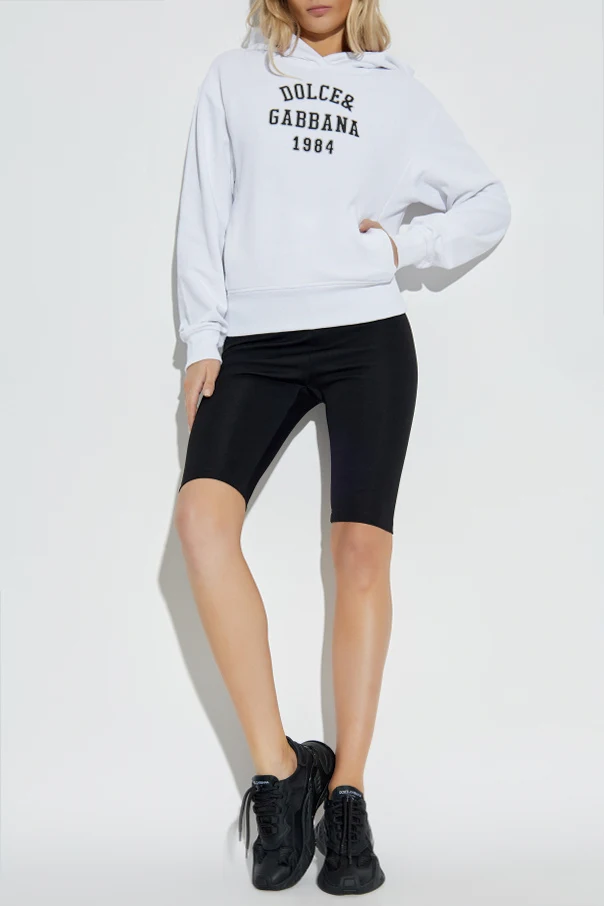 Krótkie legginsy od Dolce & Gabbana to synonim wyrafinowanej prostoty oraz włoskiej awangardy. Model o krótkim, sięgającym nad kolano fasonie eksponuje sportowy charakter, nadając każdej stylizacji nowoczesny akcent. Dominująca, głęboka czerń podkreśla ponadczasową elegancję i uniwersalność produktu, doskonałą dla miłośniczek subtelnego luksusu.