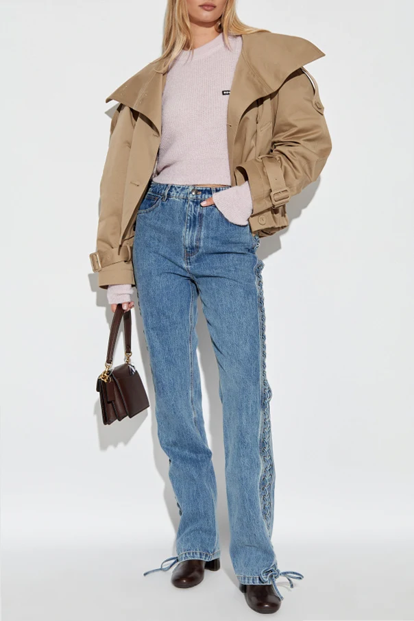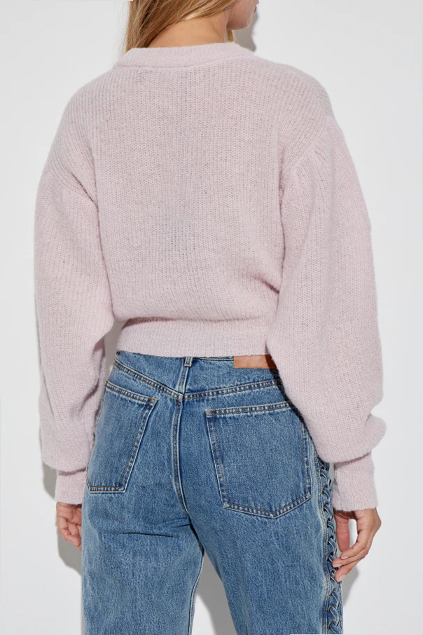 Sweter z logo marki ROTATE emanuje nowoczesną elegancją w duchu skandynawskiego minimalizmu. Lekko skrócony fason typu cropped oraz szerokie, długie rękawy z obniżoną linią ramion tworzą harmonijną sylwetkę, która subtelnie podkreśla prestiżową estetykę kolekcji. Całość wykonana jest z wyselekcjonowanej, puchatej dzianiny, łączącej w sobie miękkość alpaki, czułość wełny oraz delikatność włókien syntetycznych, co decyduje o niezwykłej lekkości i komfortowym dotyku.